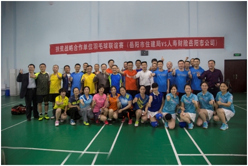 近日,市住建局联合人寿财险岳阳市公司在巴陵公司羽毛球馆举办“扶贫战略合作单位羽毛球比赛”活动,两个单位的参赛队员发扬“扶贫第一 比赛第二”的精神,在欢声和笑语中打了一场友谊赛,比赛所有礼品(包括米、油和被子等),全部捐赠给平江县童市镇合旺村贫困户,为精准扶贫增添一份力量。