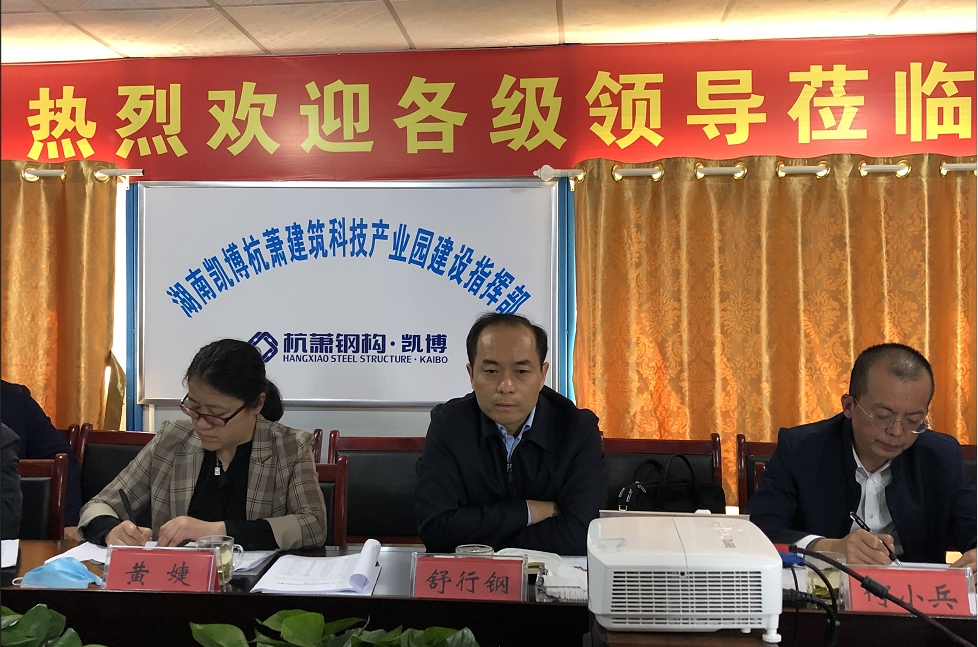 2020年4月9日,省住建厅党组副书记、副厅长舒行钢一行赴我市湘阴县凯博杭潇钢结构装配式建筑基地,专题调研岳阳市落实钢结构装配式建筑试点工作推进情况。市政府副秘书长廖长生,市住建局党组成员胡列宇以及湘阴县相关领导同志参加调研。