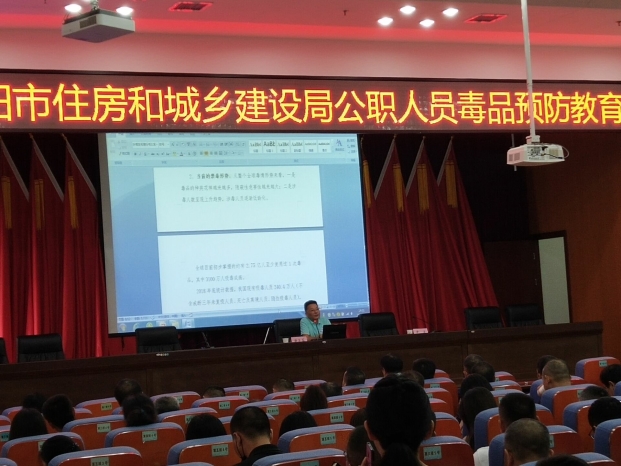 为进一步加强公职人员毒品危害的认识,增强自我保护意识,普及毒品预防知识,不断提高我局抵御毒品的能力和禁毒的意识,9月9日,市住建局以“公职人员毒品预防教育”为主题,开展了禁毒宣传教育活动。局党组成员胡列宇主持会议,机关全体干部职工和局属单位班子成员参加。本次教育活动邀请了岳阳市禁毒办有关负责人进行授课。