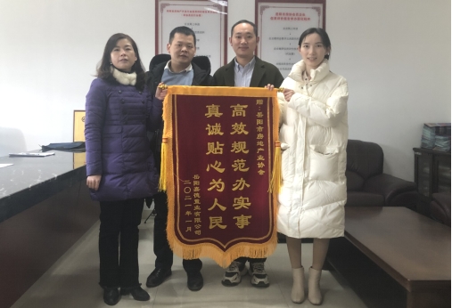 “非常感谢你们为企业提供便捷、高效的服务。”1月12日上午,岳阳嘉德置业有限公司的工作人员走进岳阳市房地产业协会,将一面写着“高效规范办实事、真诚贴心为人民”的锦旗赠与协会,对市房协全体工作人员认真负责、高效便民的优质服务和辛勤付出表示最诚挚的感谢。