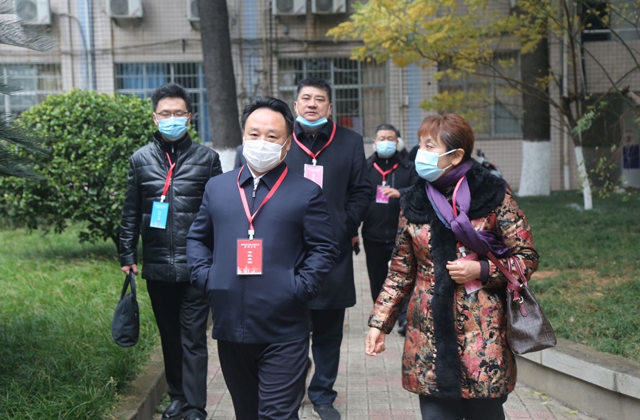徐平先后走进监控中心和各考场进行了认真查看,并慰问了考务工作一线人员。在对考务工作给予充分肯定后,他叮嘱工作人员要严格落实疫情防控、安全和秩序管理,为广大考生提供优良的考试环境;要严肃考风考纪,确保考试公平、公正。