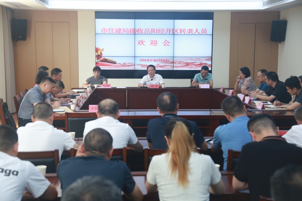 9月5日上午,市住建局召开接收岳阳经开区转隶人员会议,局党组书记、局长徐平出席并讲话。局领导晏桃保主持会议,市住建局在家党组成员、调研员,局机关相关科室、二级机构主要负责人以及经开区转隶全体人员参加会议。