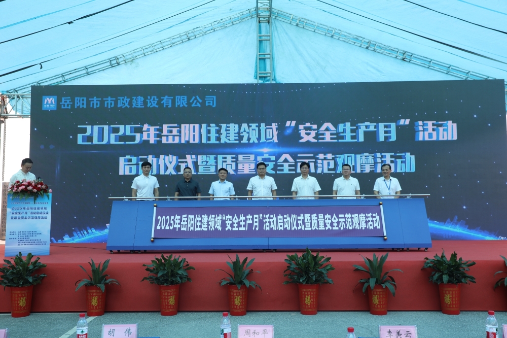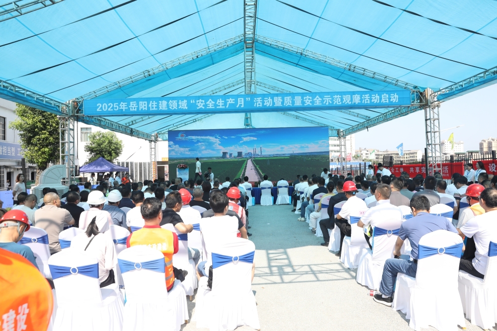 6月16日上午9点30分,2025年岳阳市住建领域“安全生产月”启动仪式暨质量安全示范观摩活动,在岳阳市康复医院扩建及精神卫生设施设备改造工程项目部现场盛大开启。岳阳市委常委、副市长李美云,市政府副秘书长周和平,市住建局党组书记、局长钱丹青出席活动,市安委办相关领导、市住建局、市民政局等相关领导,局系统相关科室、单位负责同志以及全市在建项目建设、施工、监理单位超过300人参加。现场气氛热烈,大家满怀期待,共同见证这一重要时刻。