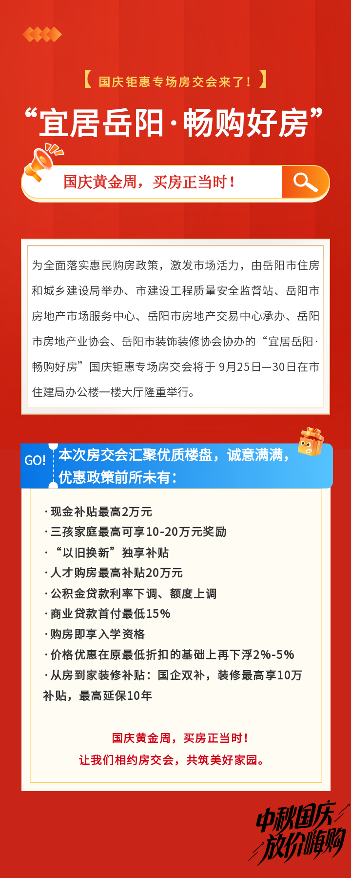 “宜居岳阳·畅购好房”国庆钜惠专场房交会来了!