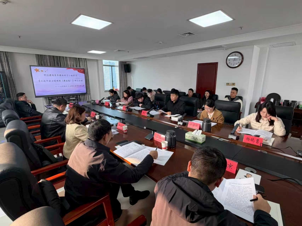 为深化青年干部理论武装,凝聚住建事业青春动能,12月9日下午,市住建局青年理论学习示范小组组织开展《习近平谈治国理政(第五卷)》专题学习研讨活动,引导青年干部从理论著作中汲取智慧力量,以理论之光指引实践之路,为住建事业高质量发展注入青春新活力。