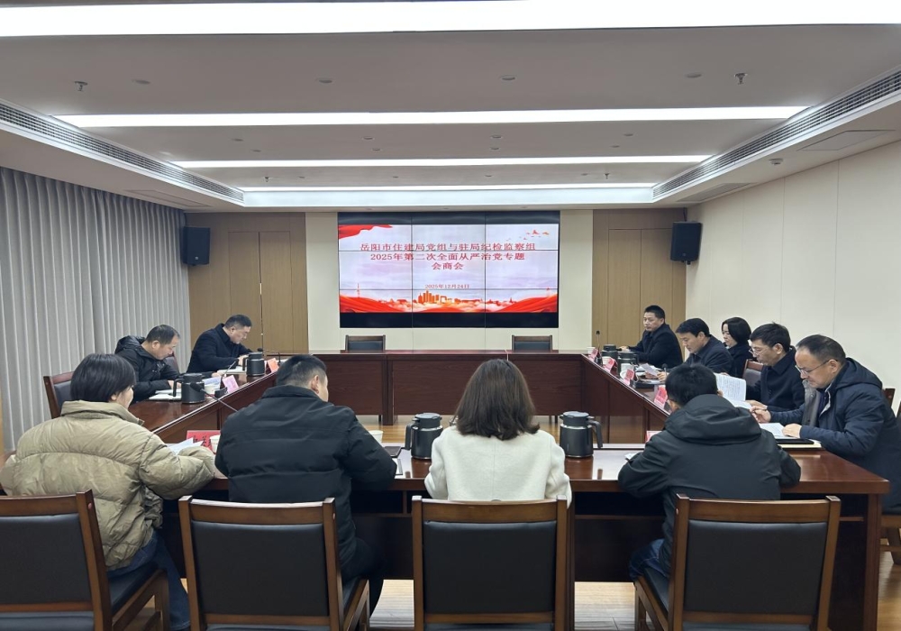 2025年12月24日下午,岳阳市住房和城乡建设局党组与市纪委监委驻市住建局纪检监察组2025年第二次全面从严治党专题会商会召开,市纪委监委第二纪检监察室主任潘纲到会指导。市住建局党组书记、局长钱丹青主持会议,驻局纪检组组长杨志华、局党组全体成员及机关党委、机关纪委、人事科、办公室主要负责人参加会议。