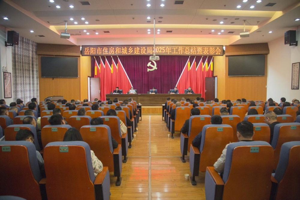 2026年2月12日下午,岳阳市住建局召开2025年度工作总结暨表彰大会,全面总结2025年工作成绩,表彰先进,部署2026年重点工作。局党组成员、副局长李行主持会议,局党组书记、局长钱丹青作讲话,局党组成员,局机关调研员、副处级干部,局机关全体干部职工,局属单位班子成员、分支机构主要负责人,顺天、天通、科正公司主要负责人参会。