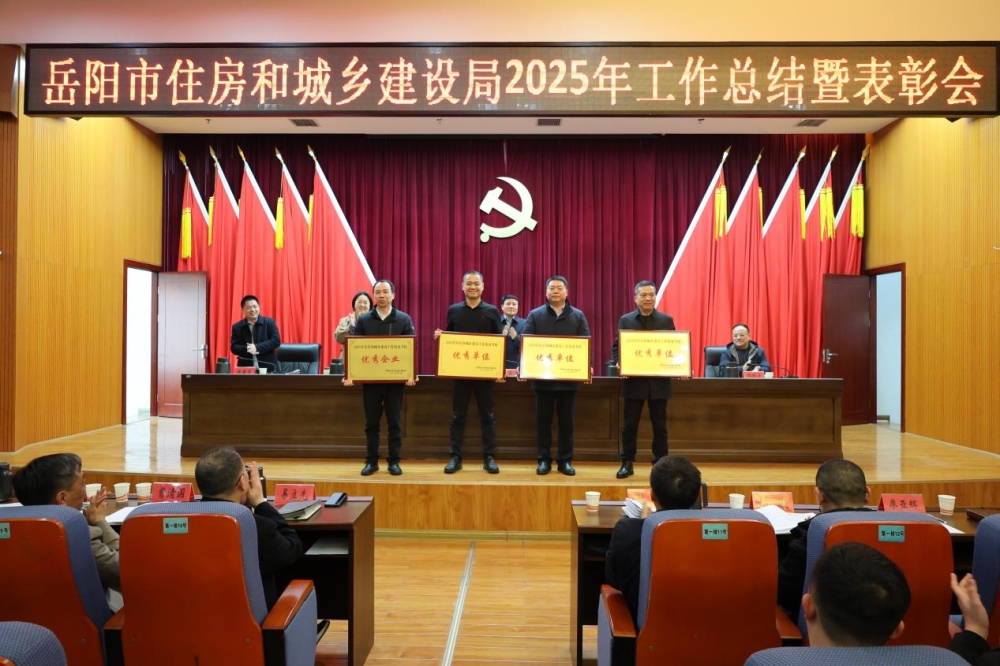 钱丹青局长指出,2025年是岳阳市住建系统攻坚克难、硕果累累的一年,在市委、市政府的坚强领导下,全局紧扣高质量发展大局,从政治建设到经济建设,从产业发展到城乡提质,从民生保障到安全守底,实现多点突破、全面开花,交出了一份亮眼的答卷。全年建筑业产值增速居全省第1,商品房销售面积增速居全省第2、人均住房面积水平指标居全省第2,在省住建厅年终评价中斩获11项先进,总数位列全省第2,荣获省政府“有效防范化解房地产风险”大抓落实督查激励和全省七大攻坚行动“安全强基固本攻坚”先进单位。