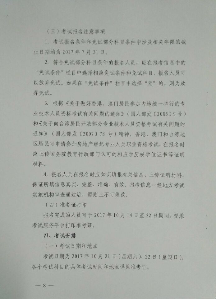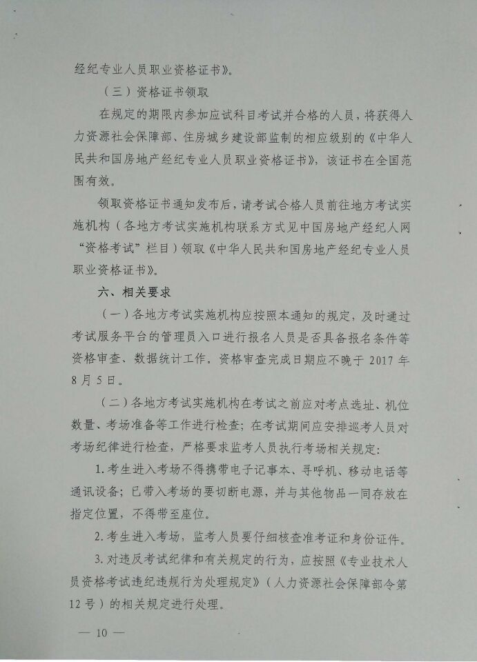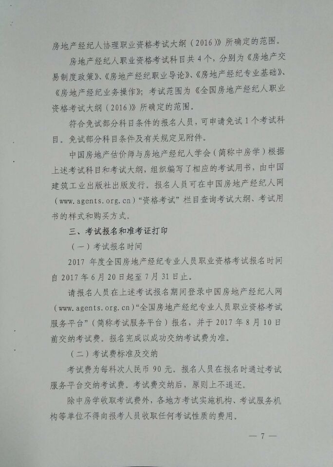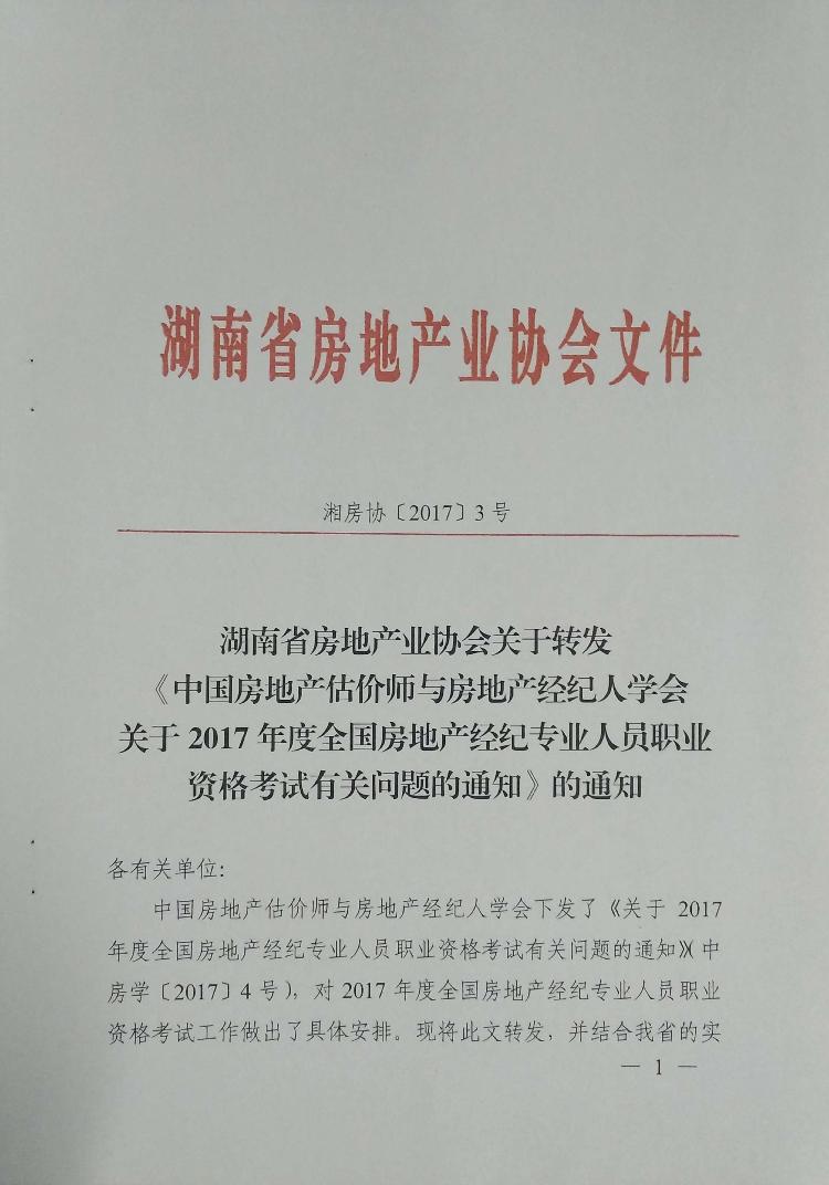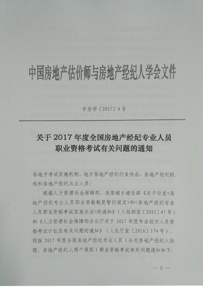 关于2017年度房地产经纪专业人员职业资格考试有关问题的通知