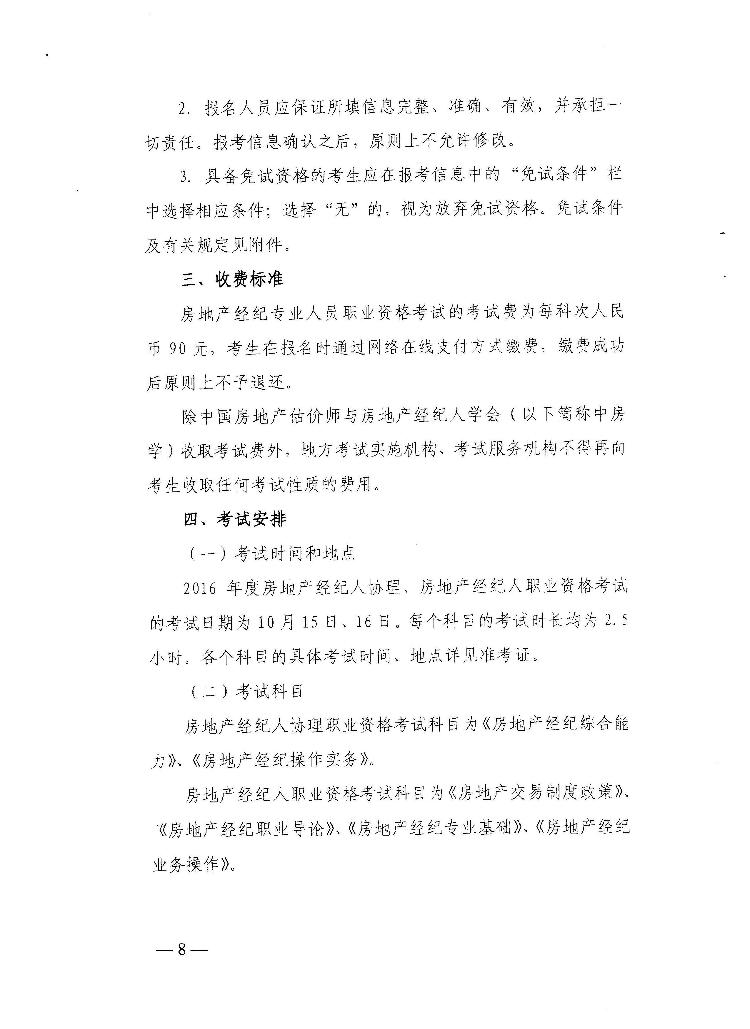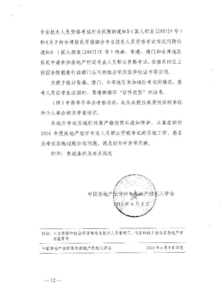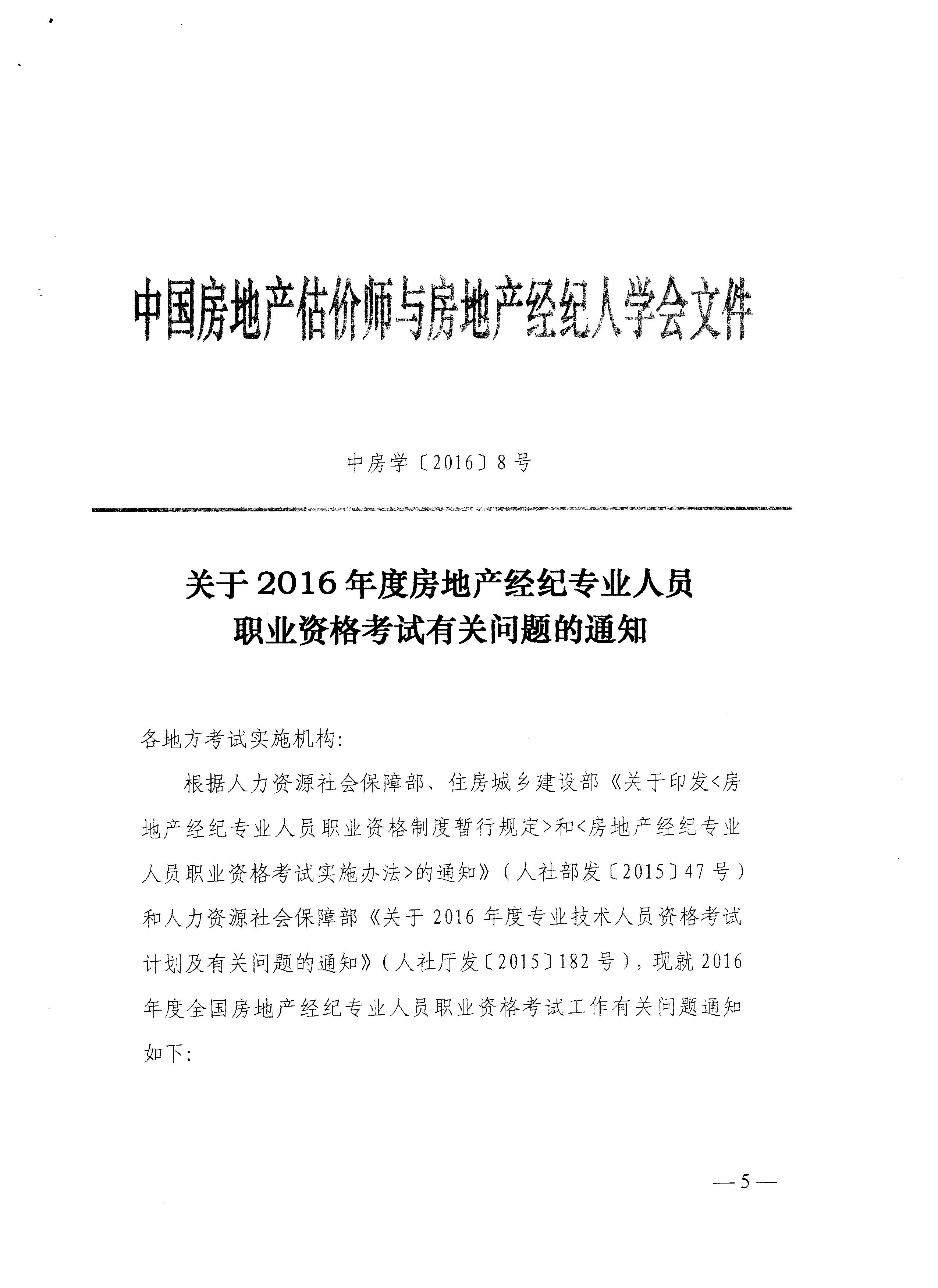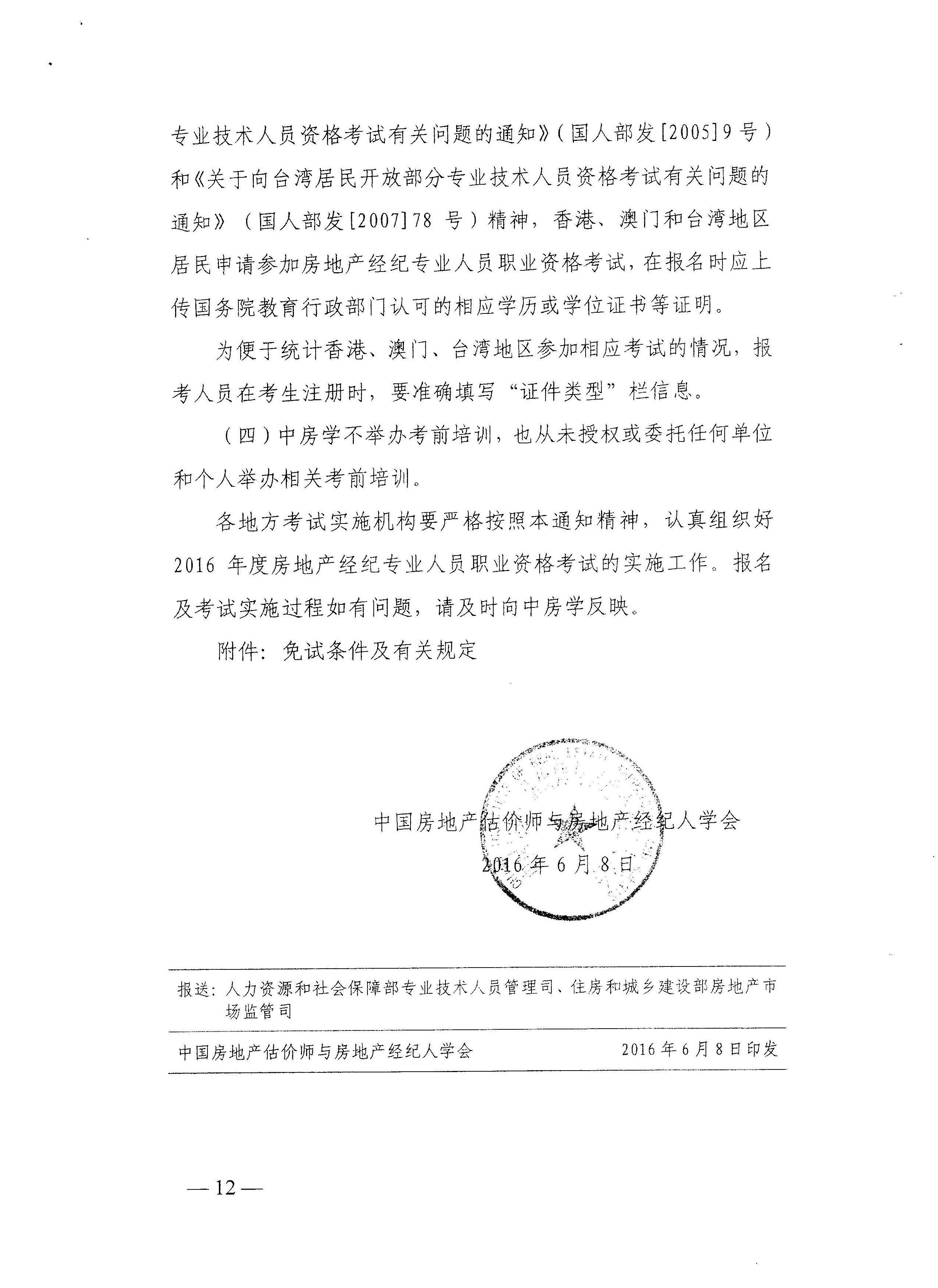 关于2016年度房地产经纪专业人员职业资格考试有关问题的通知