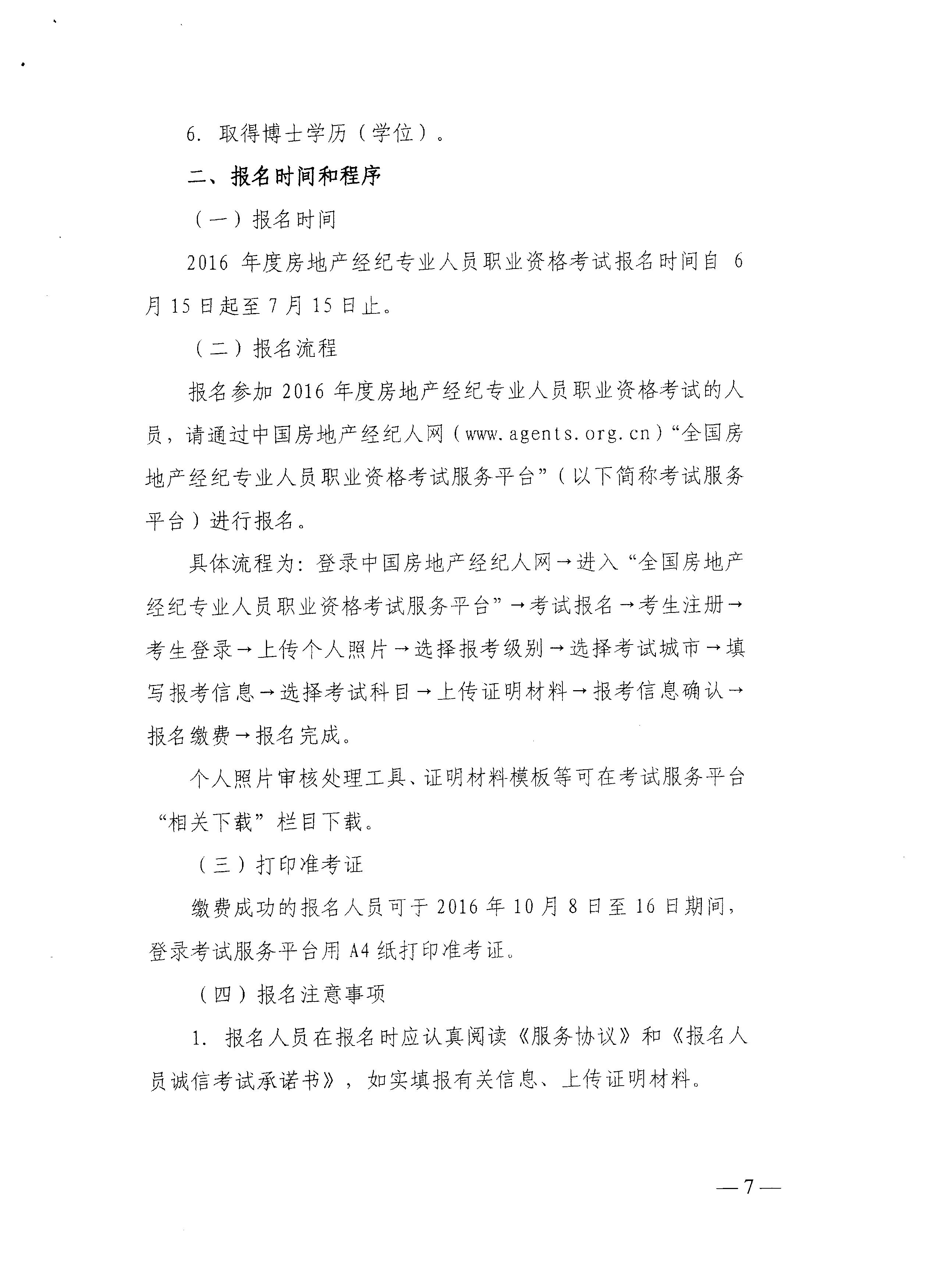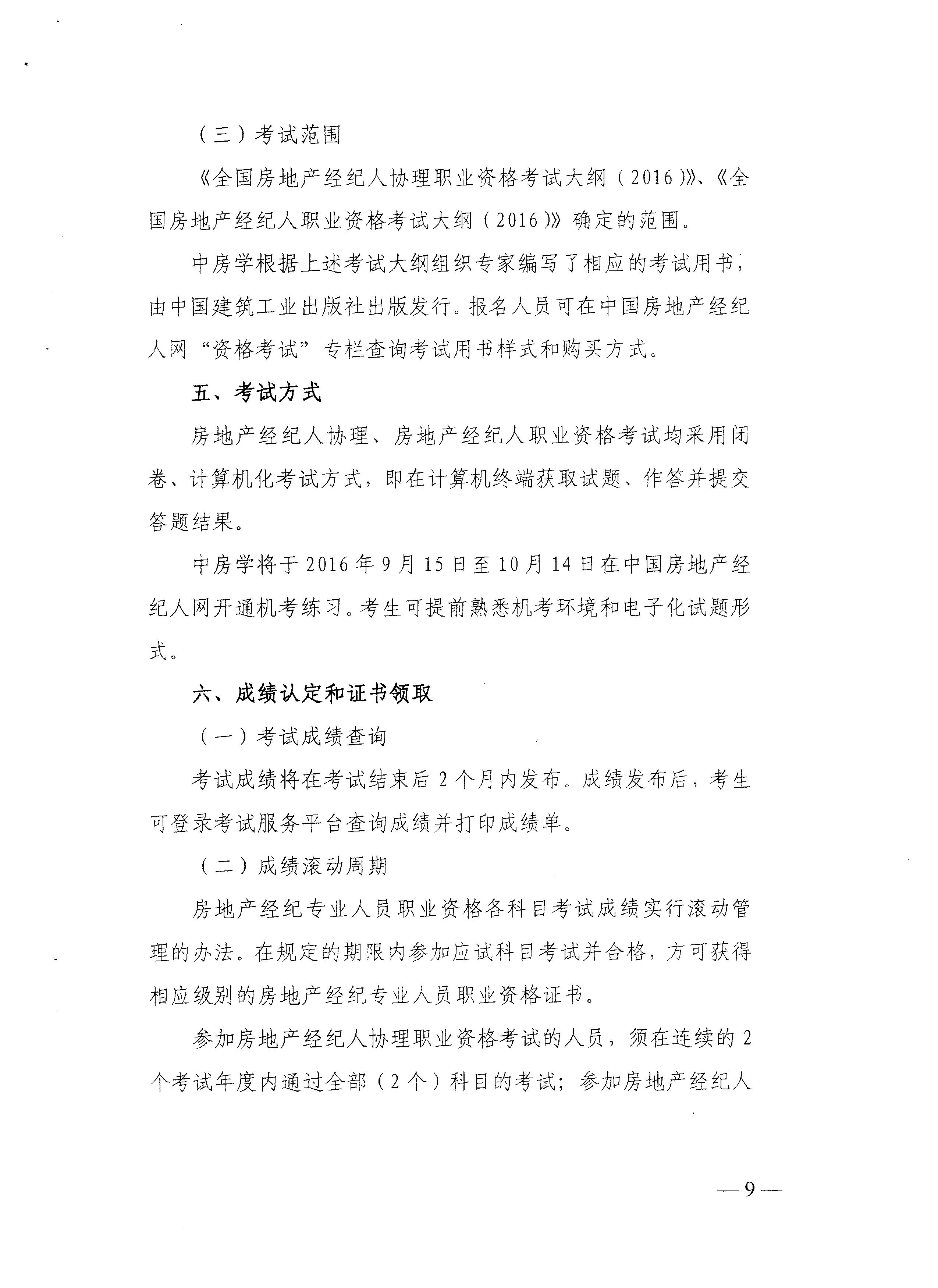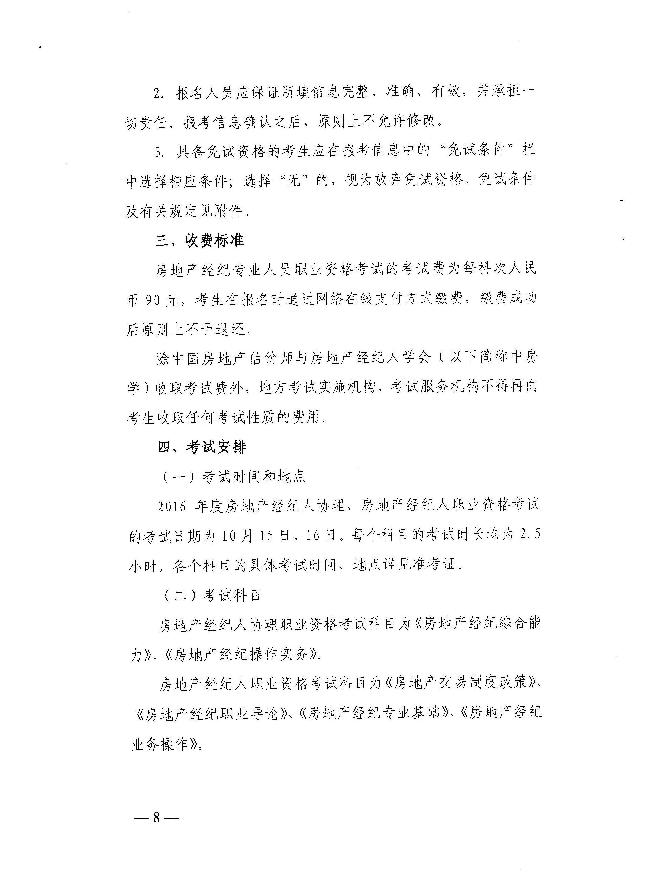 关于2016年度房地产经纪专业人员职业资格考试有关问题的通知