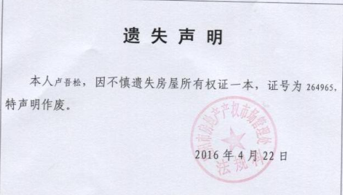 关于卢吾松的遗失声明公示
