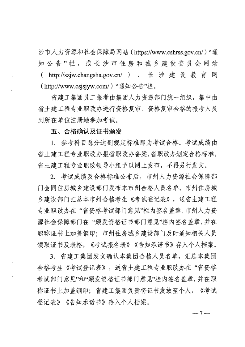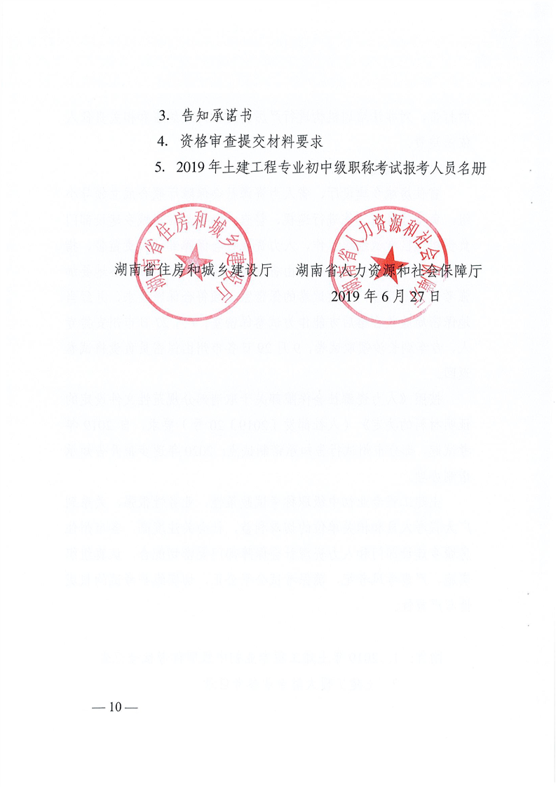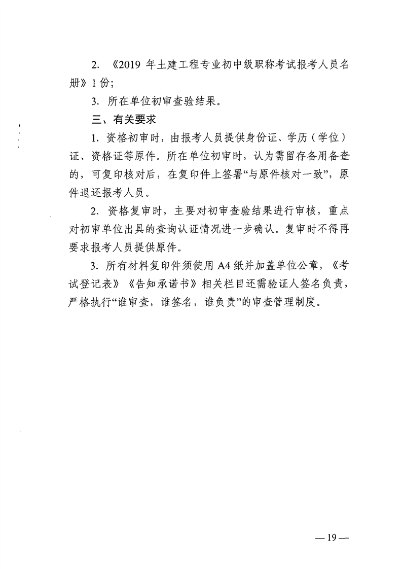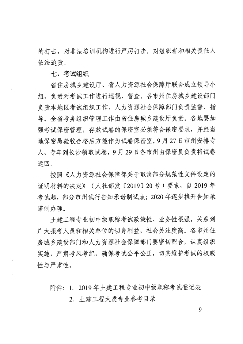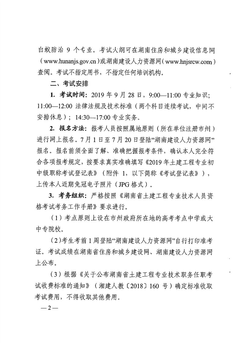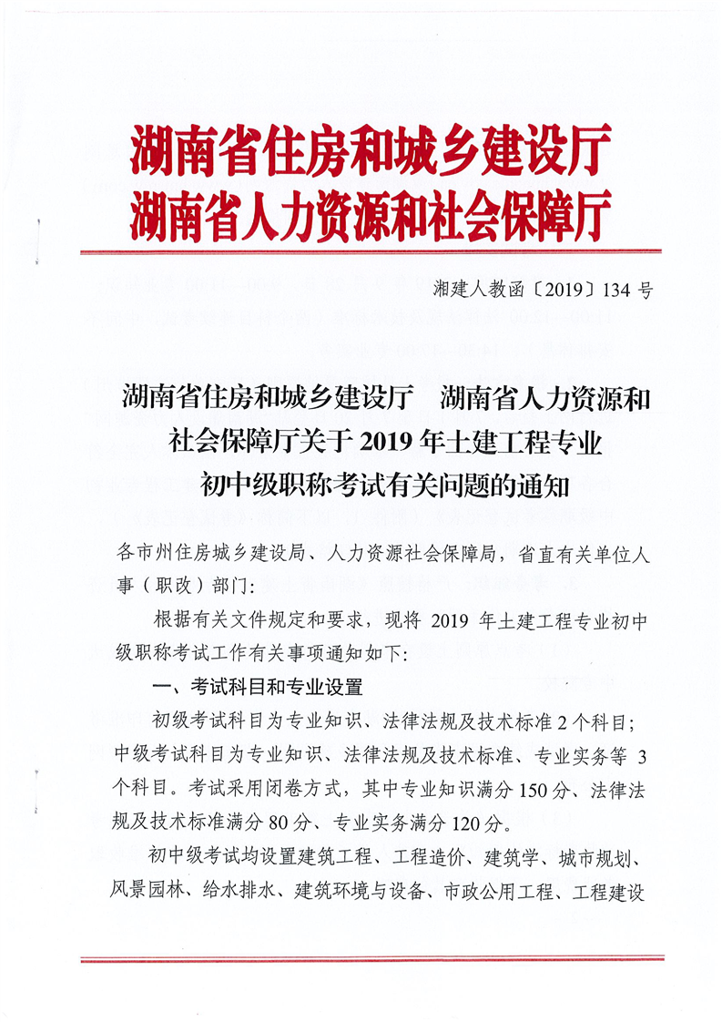 关于2019年土建工程专业初中级职称和高级职称专业考试有关问题的通知(湘建人教函〔2019〕134号)