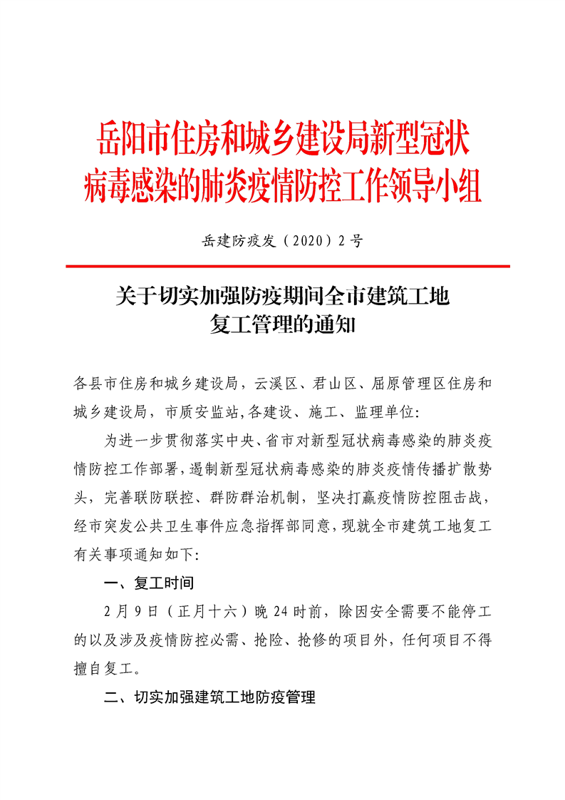 关于切实加强防疫期间全市建筑工地复工管理的通知