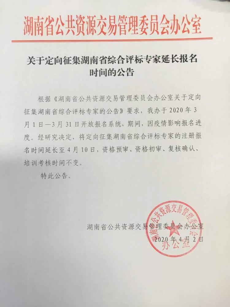 关于定向征集湖南省综合评标专家延长报名时间的公告