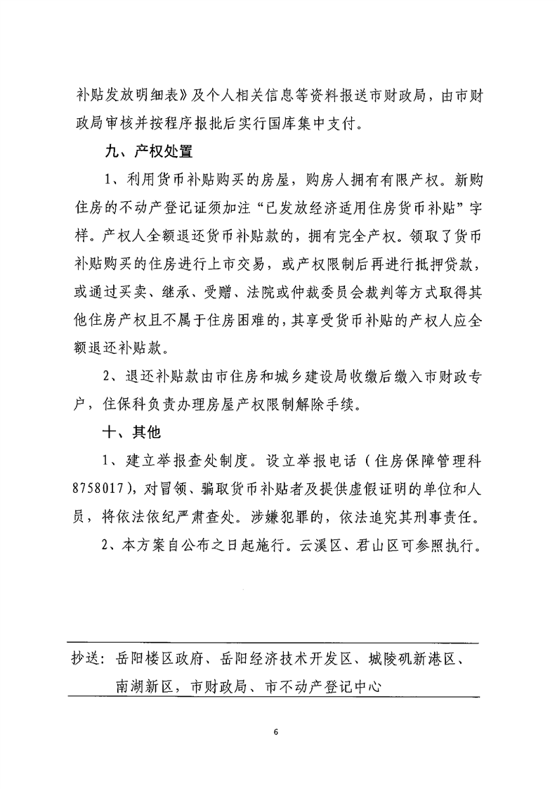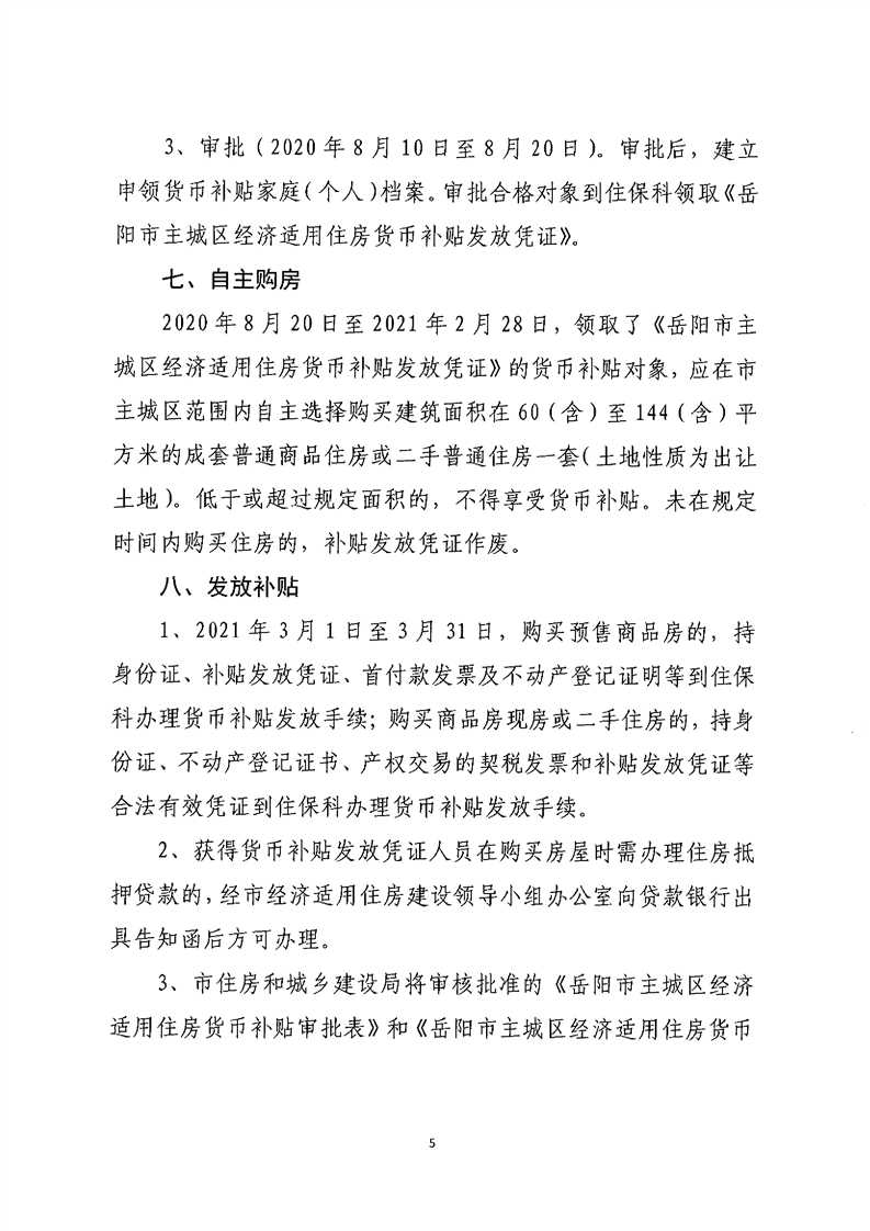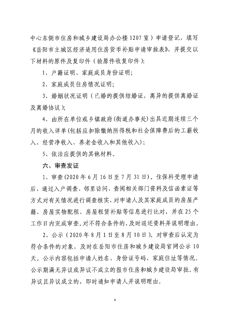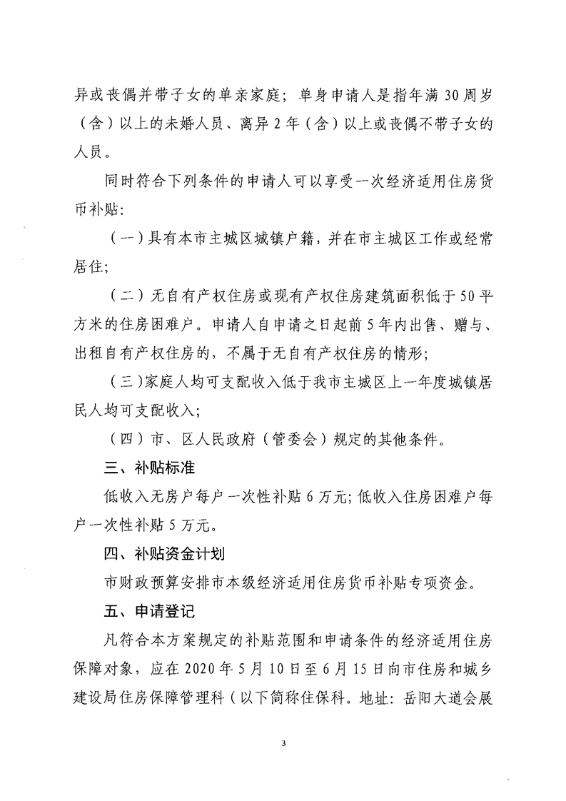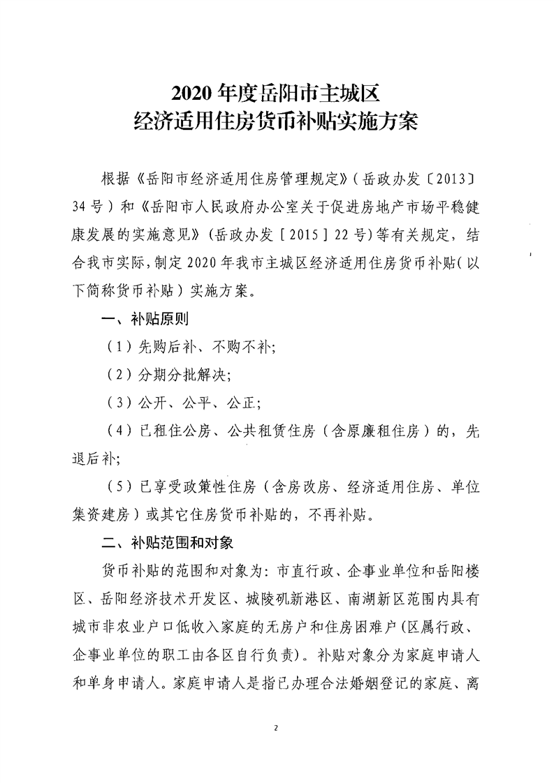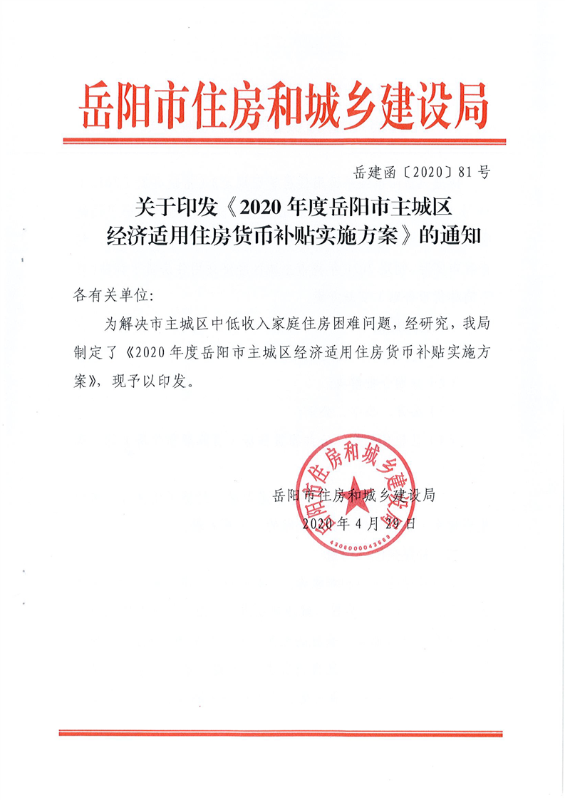 关于印发《2020年度岳阳市主城区经济适用住房货币补贴实施方案》的通知