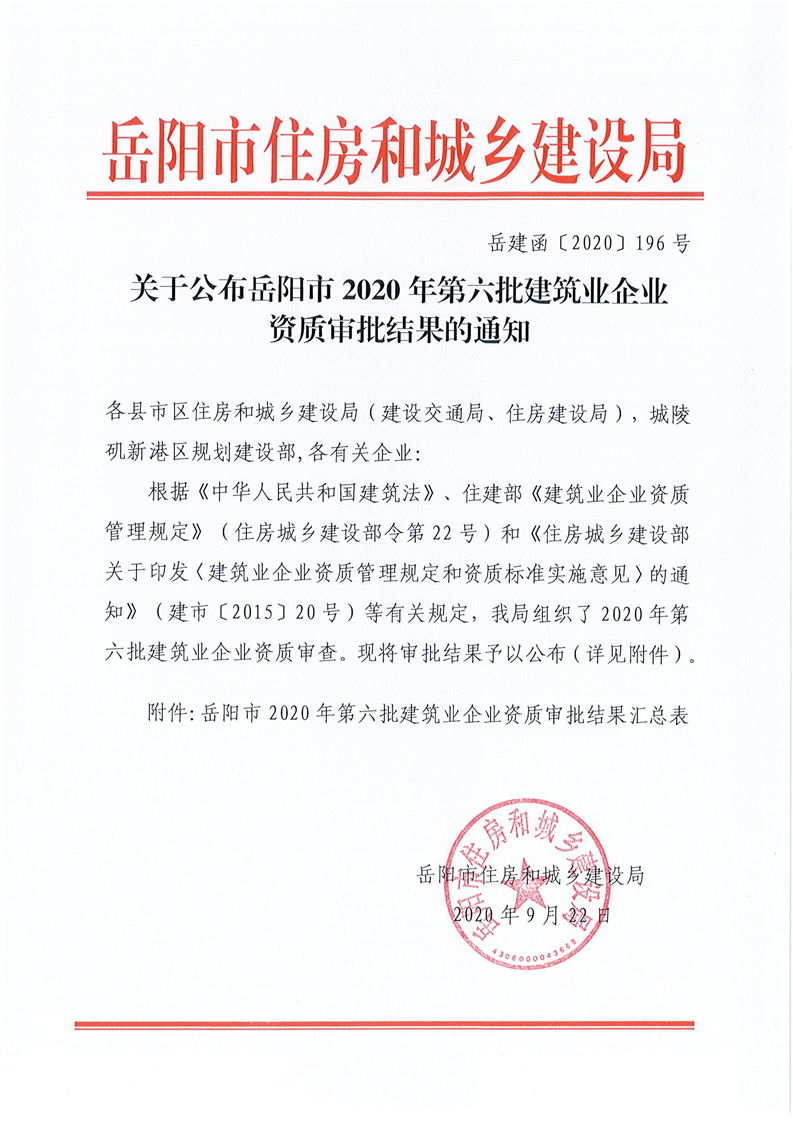 | 2020年岳阳市第六批建筑业企业资质评审情况汇总表 | |||