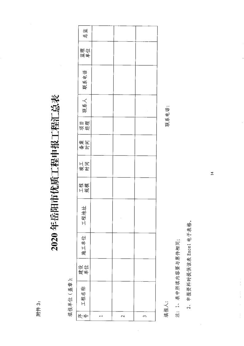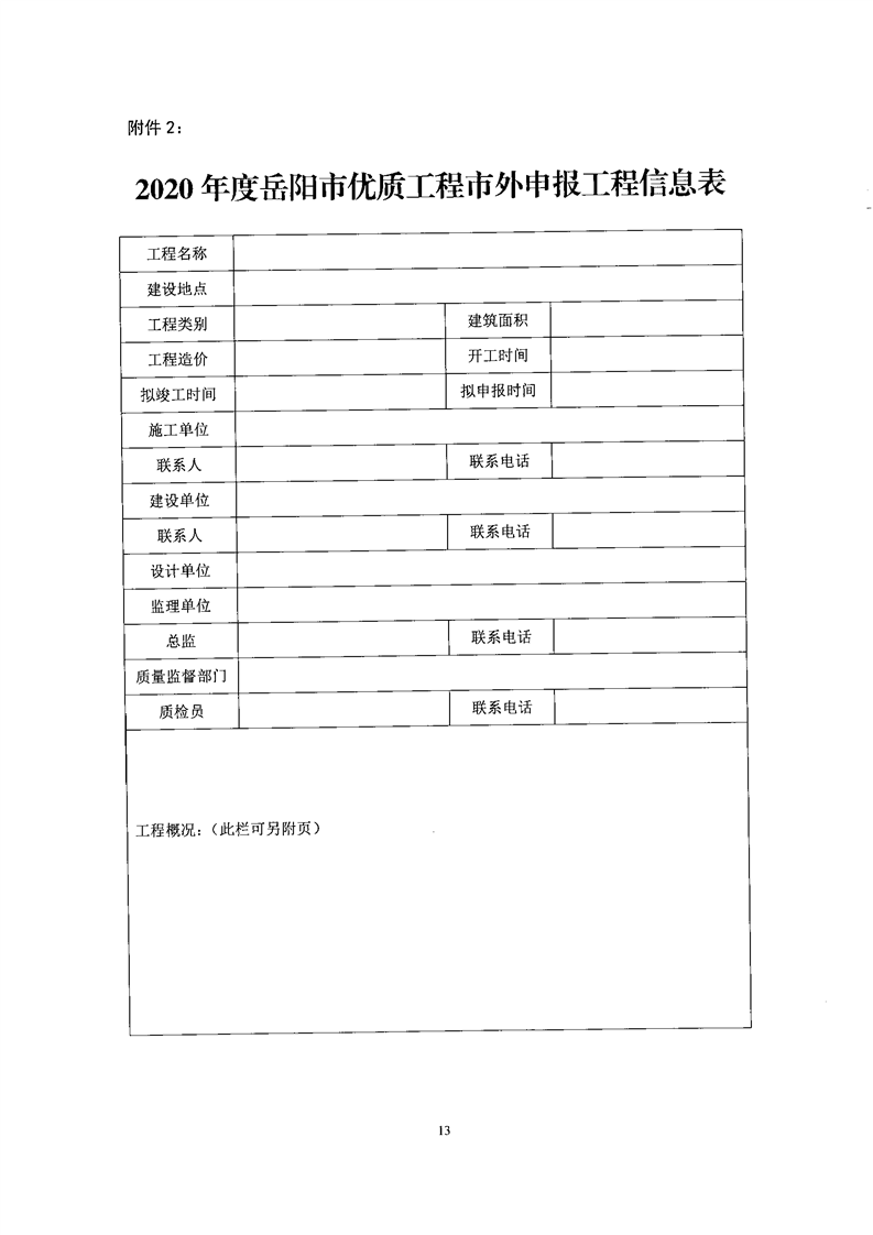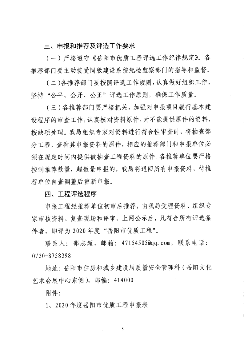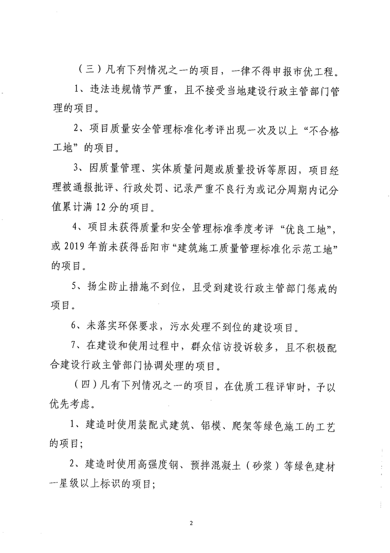 关于开展2020年 “岳阳市优质工程”评选活动的通知