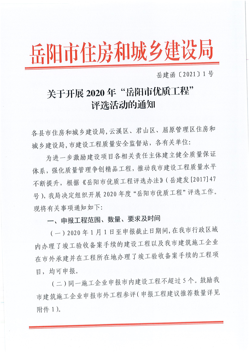 岳建函(2021)年1号(关于开展2020年 “岳阳市优质工程”评选活动的通知).doc