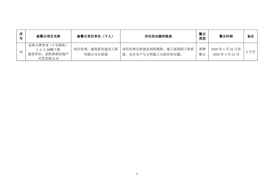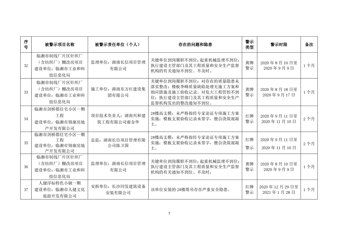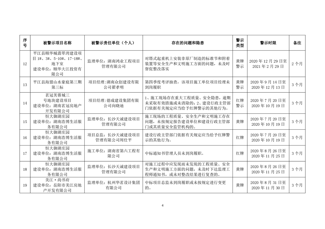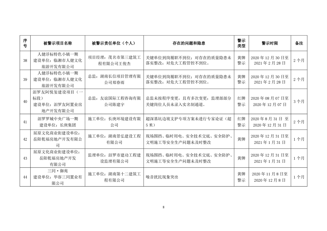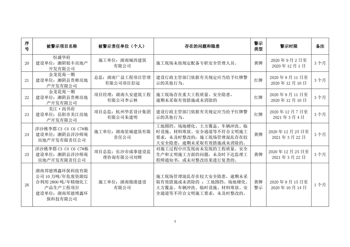 关于公布岳阳市2020年下半年建设工程管理红、黄牌警示的通知