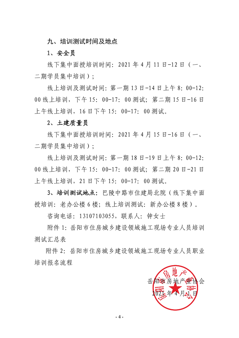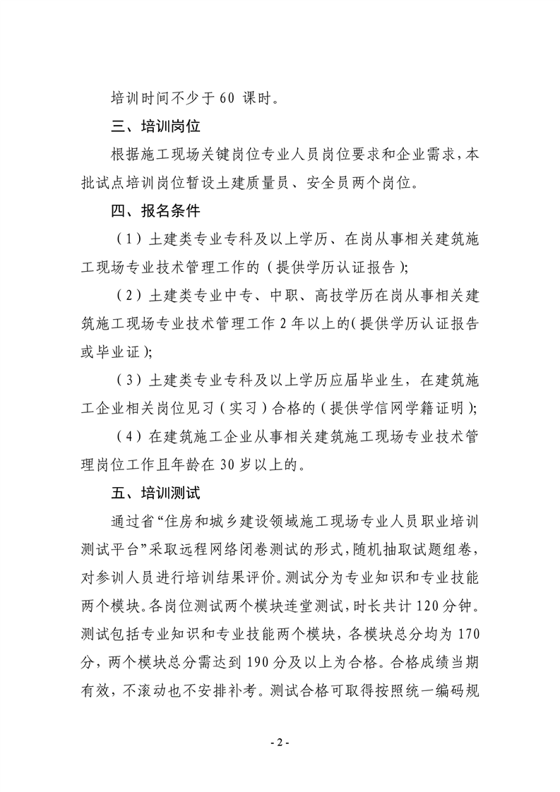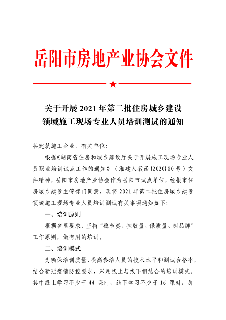 关于开展2021年度第二批建设领域施工现场专业人员培训测试的通知