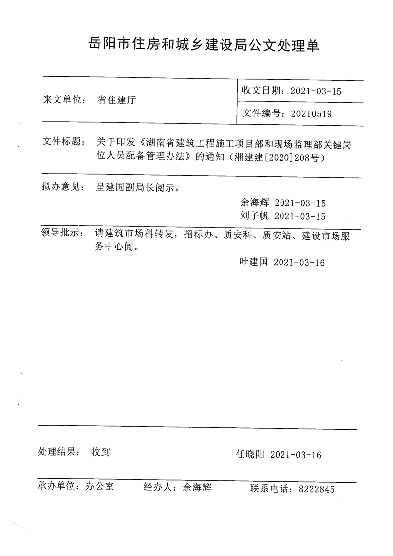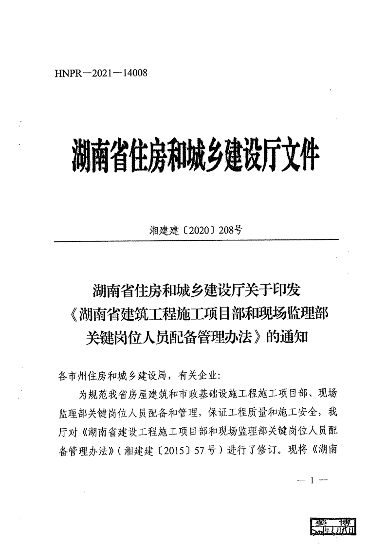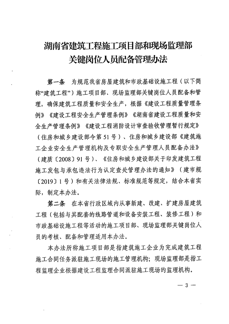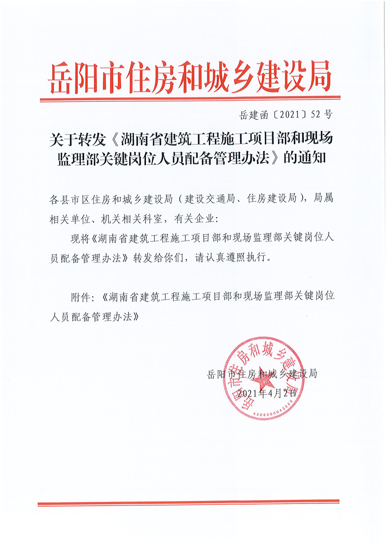 关于转发《湖南省建筑工程施工项目部和现场监理部关键岗位人员配备管理办法》的通知