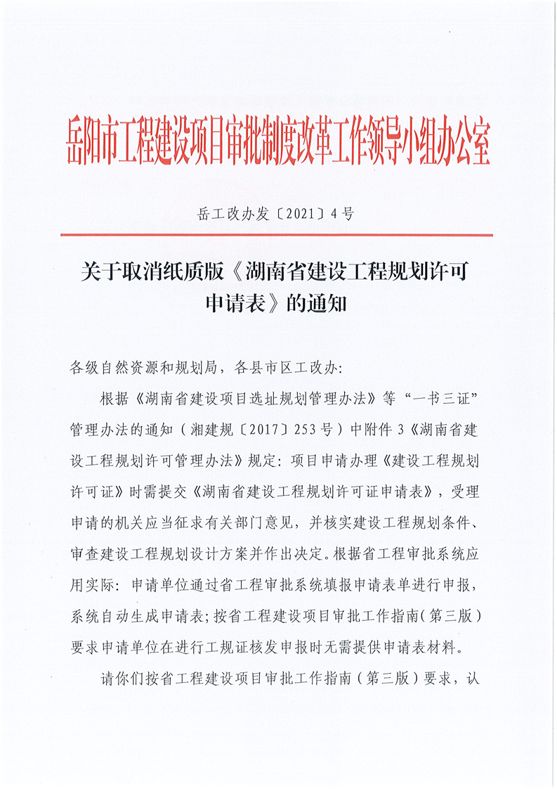 4岳工改办发(2021)4号关于取消纸质版《湖南省建设工程规划许可申请表》的通知.pdf