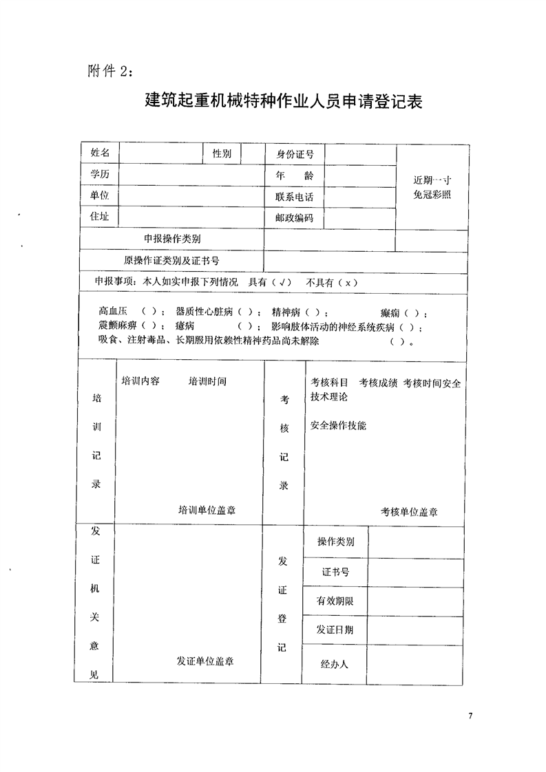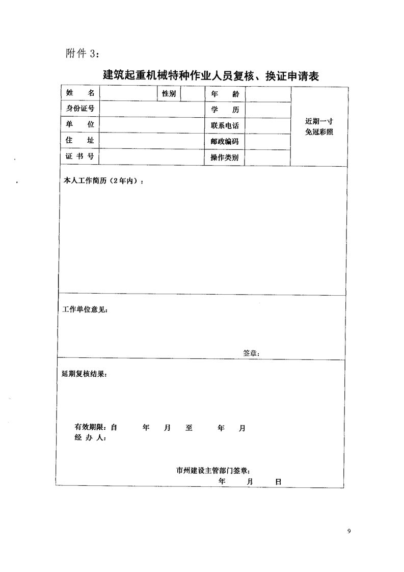 建筑起重机械特种作业人员申请登记表和建筑起重机械特种作业人员复核、换证申请表.doc