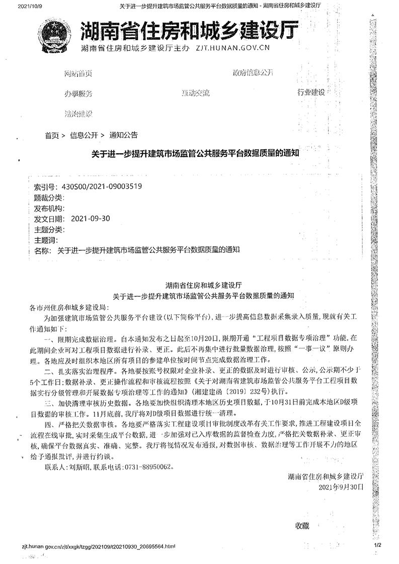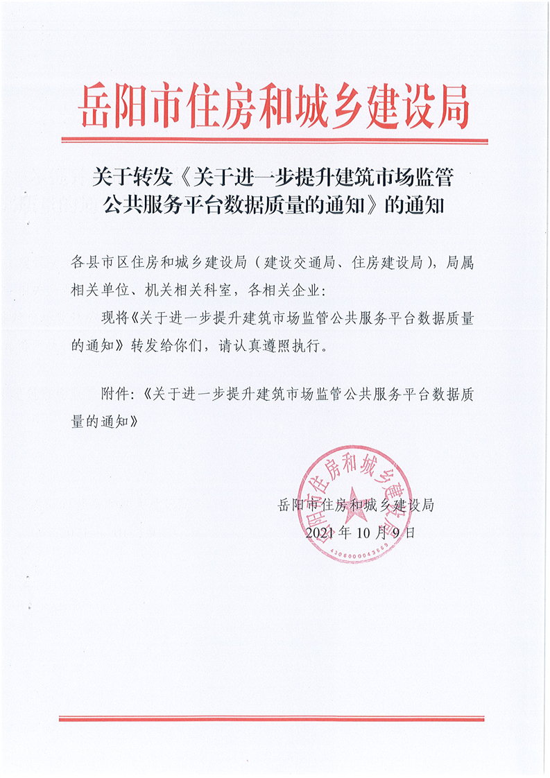 关于转发《关于进一步提升建筑市场监管公共服务平台数据质量的通知》的通知