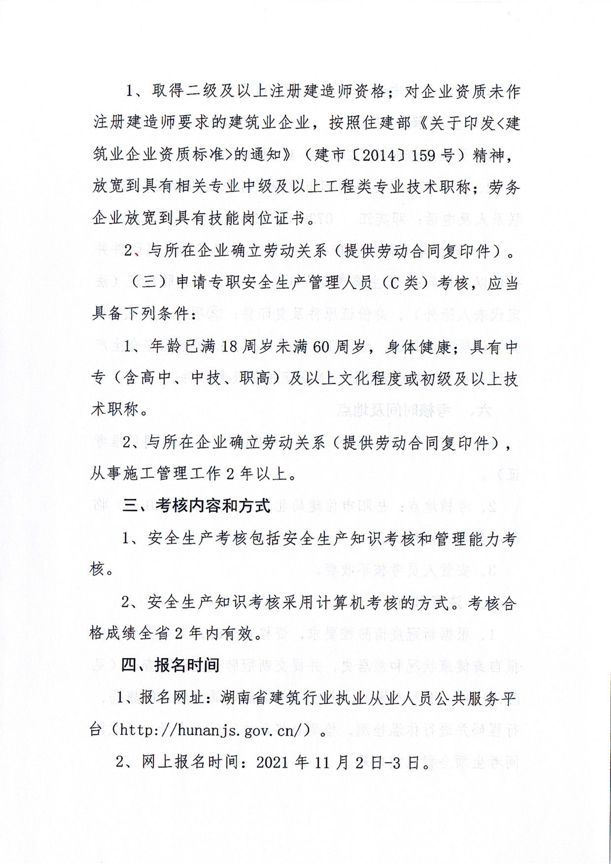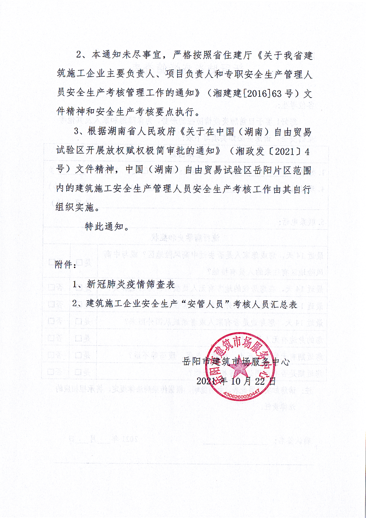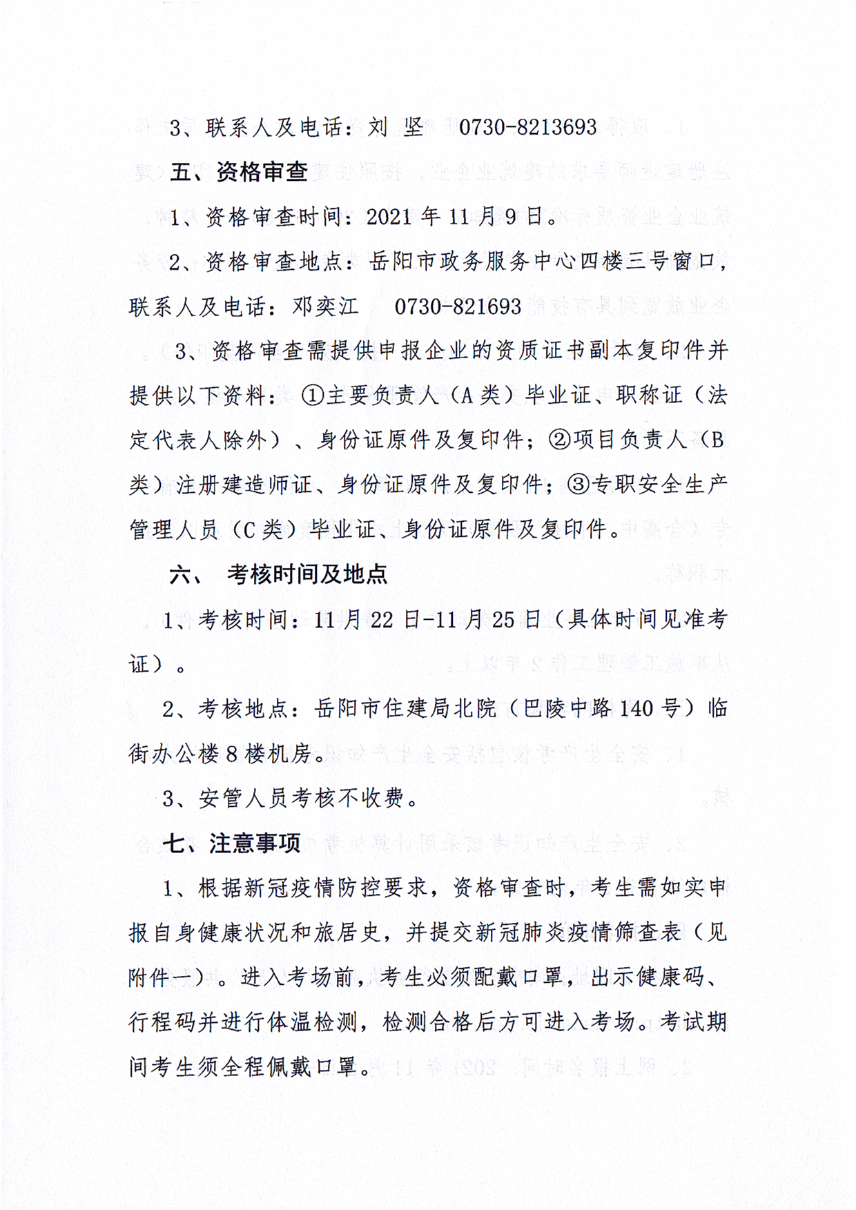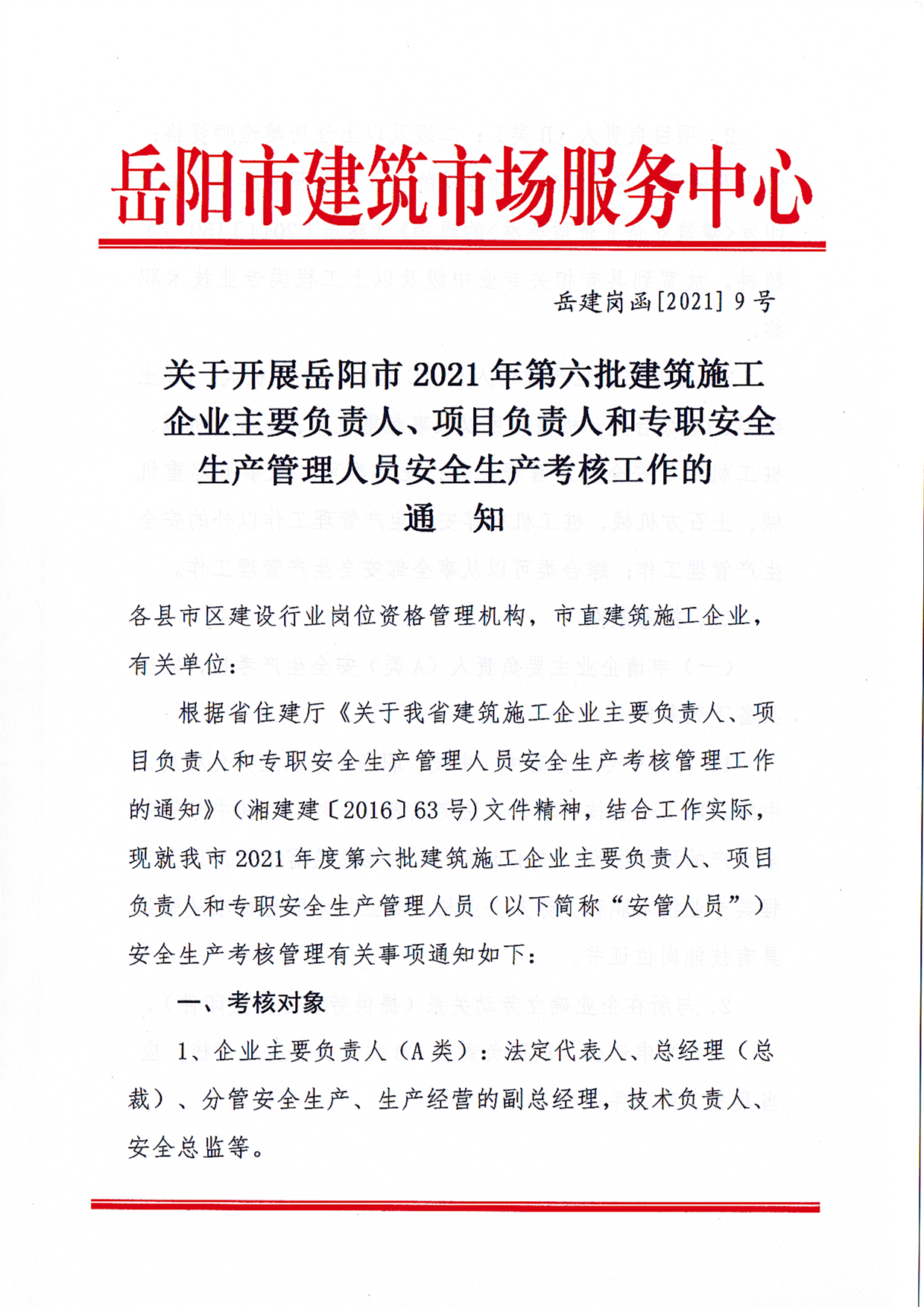 关于开展岳阳市2021年第六批建筑施工企业主要负责人、项目负责人和专职安全生产管理人员安全生产考核工作的通知