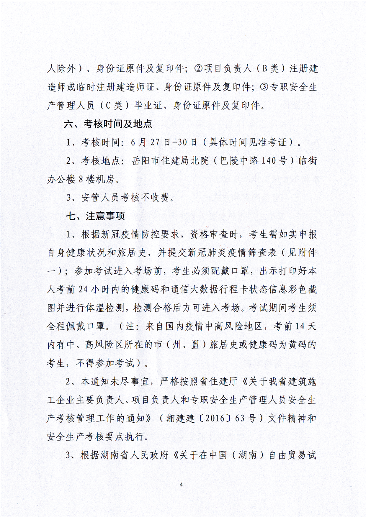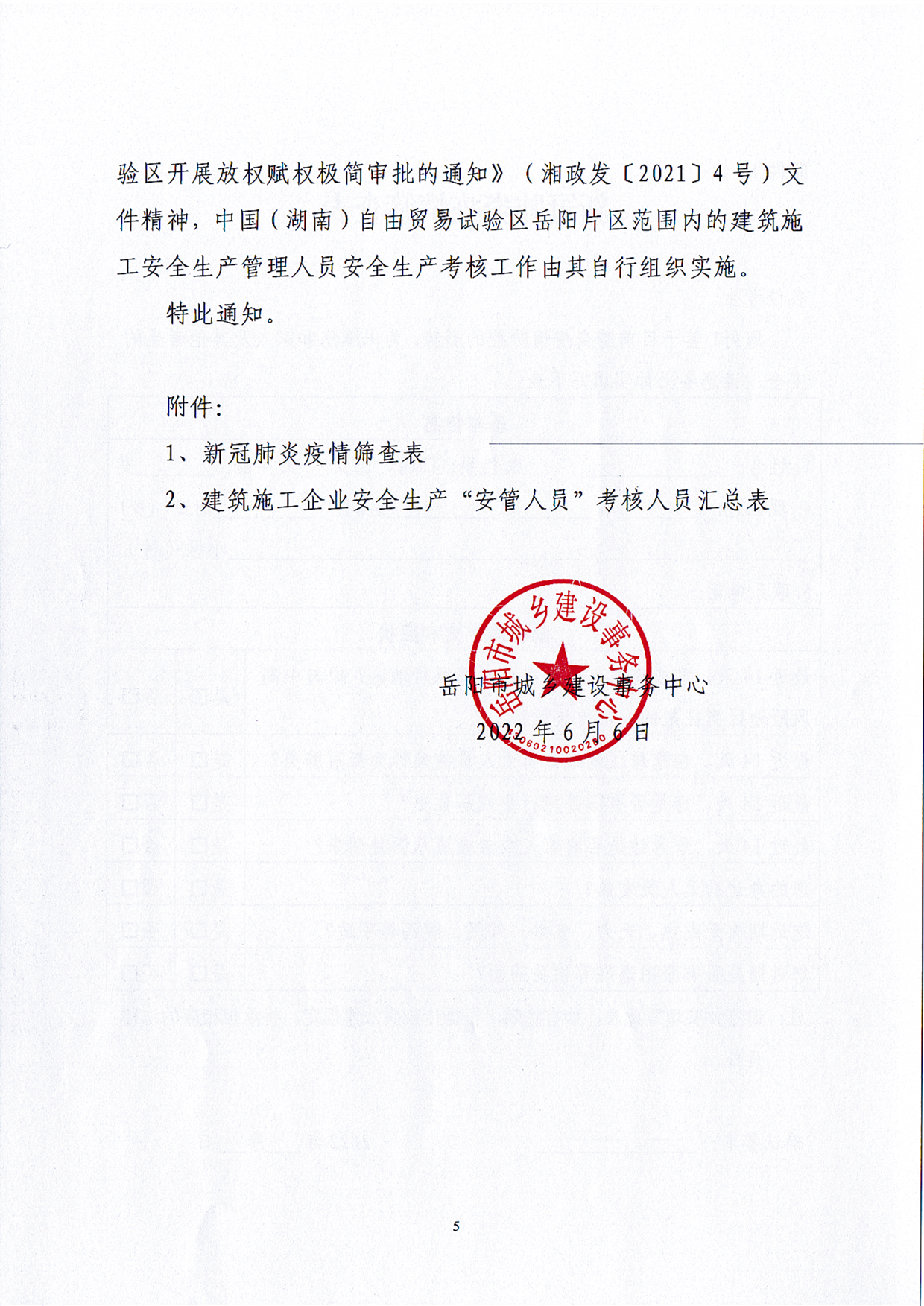 岳建岗函(2022)4号(岳阳市2022年度第三批建筑施工企业主要负责人、项目负责人和专职安全生产管理人员安全生产考核的通知.doc
