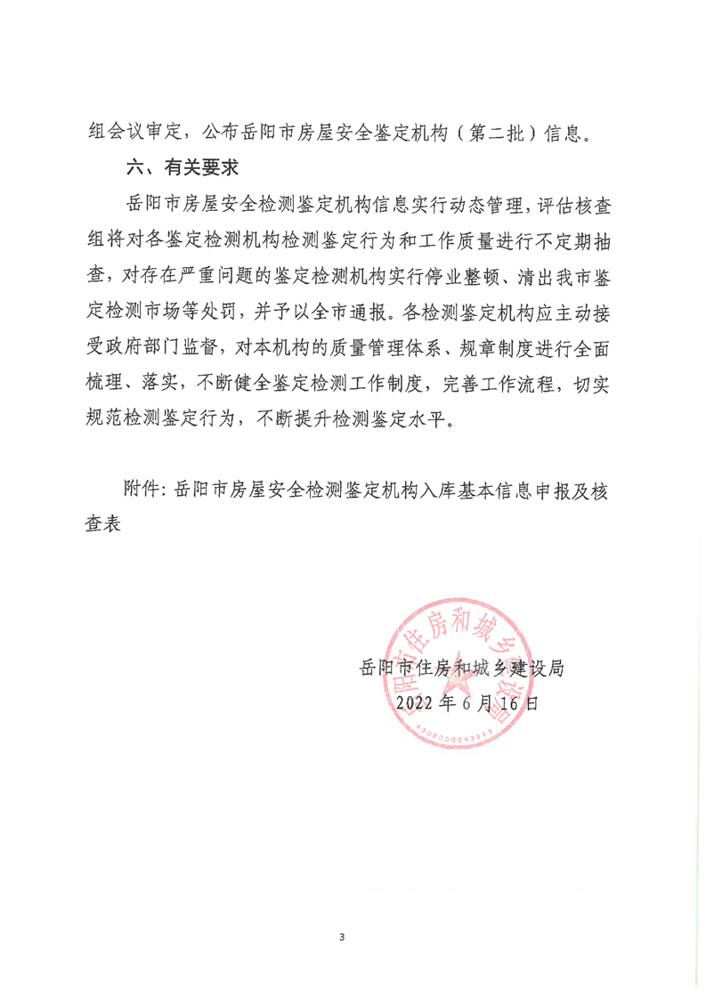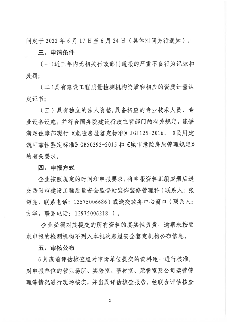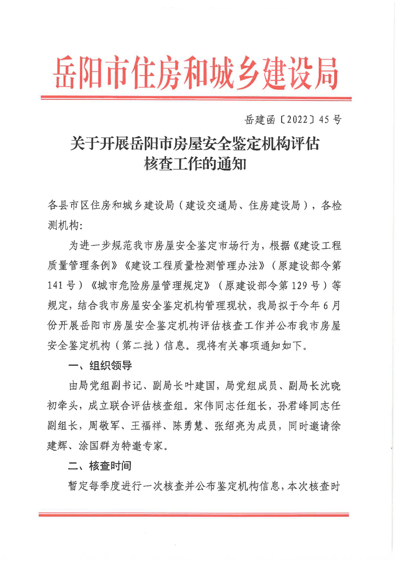 关于开展岳阳市房屋安全鉴定机构评估核查工作的通知