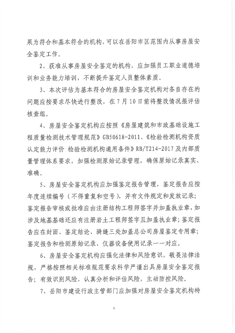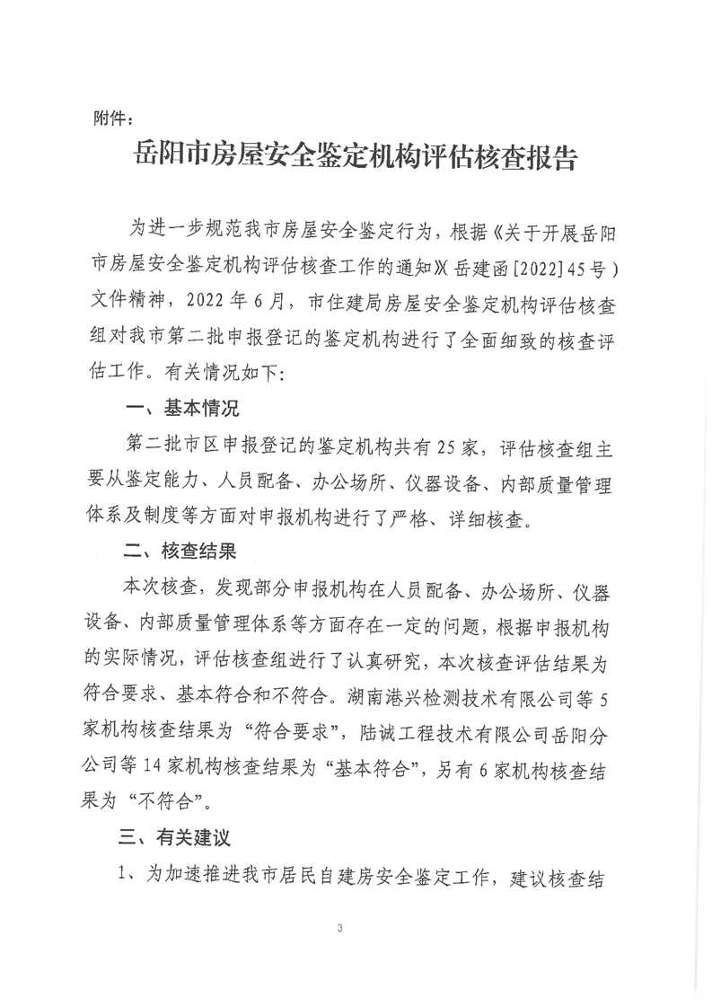 关于公布《岳阳市房屋安全鉴定机构评估核查报告》的通知