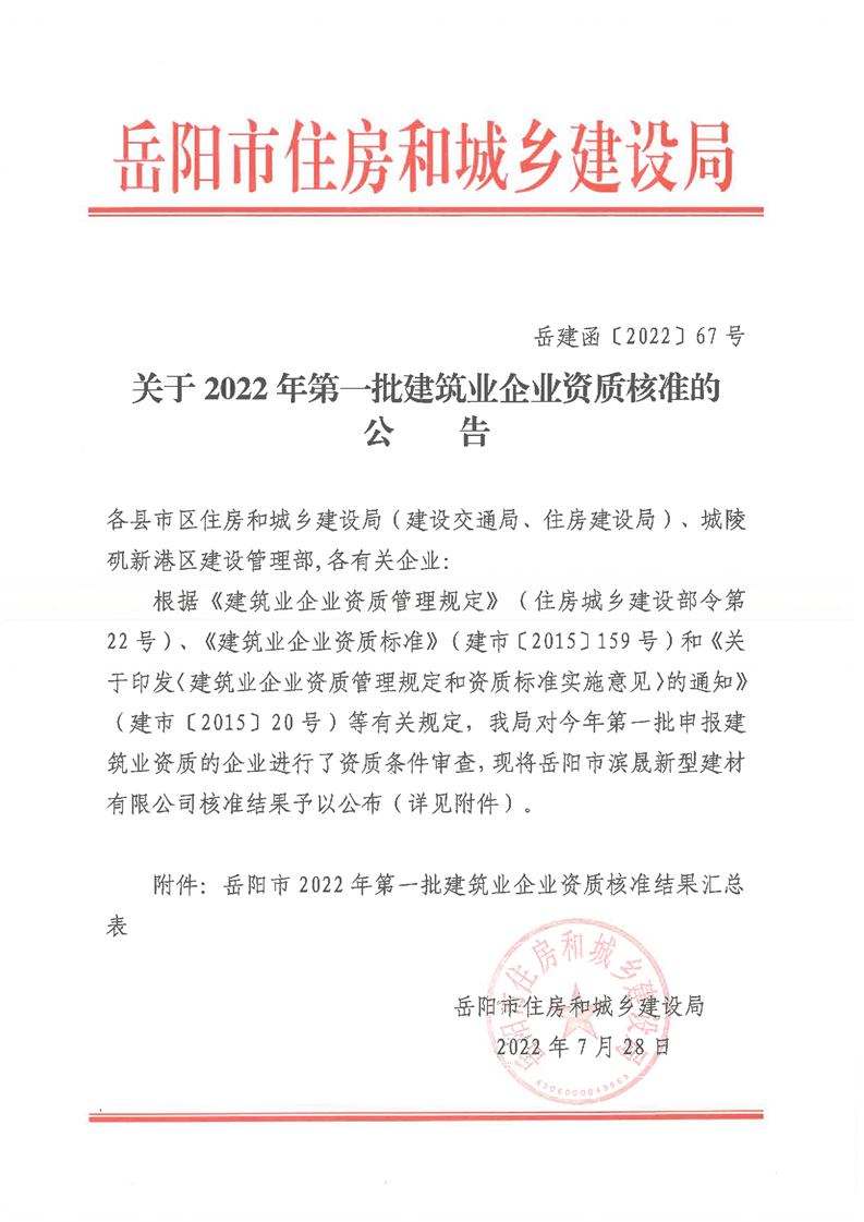 关于2022年第一批建筑业企业资质核准的公告