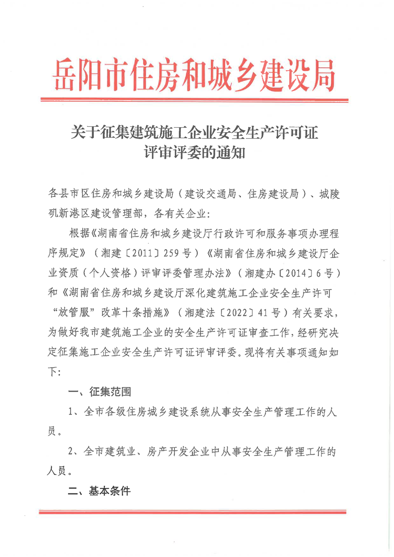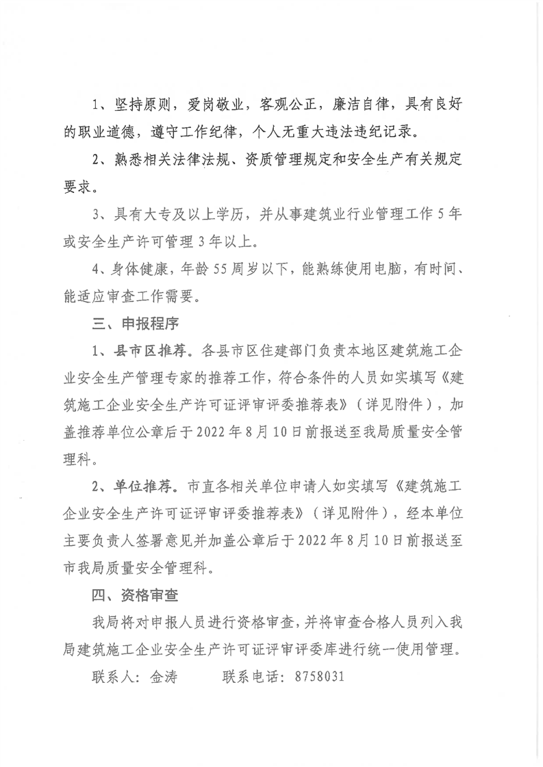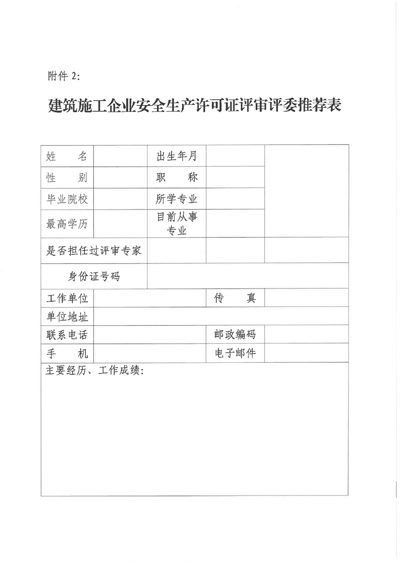 关于征集建筑施工企业安全生产许可证评审评委的通知
