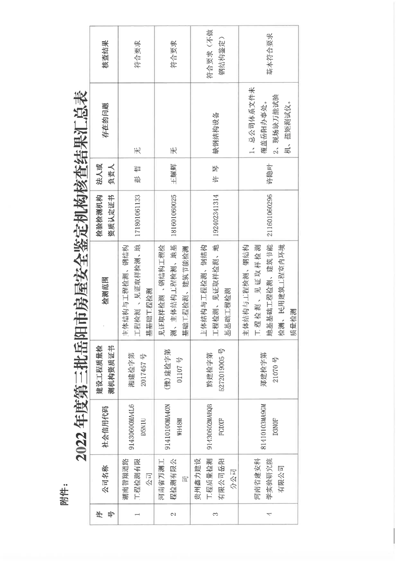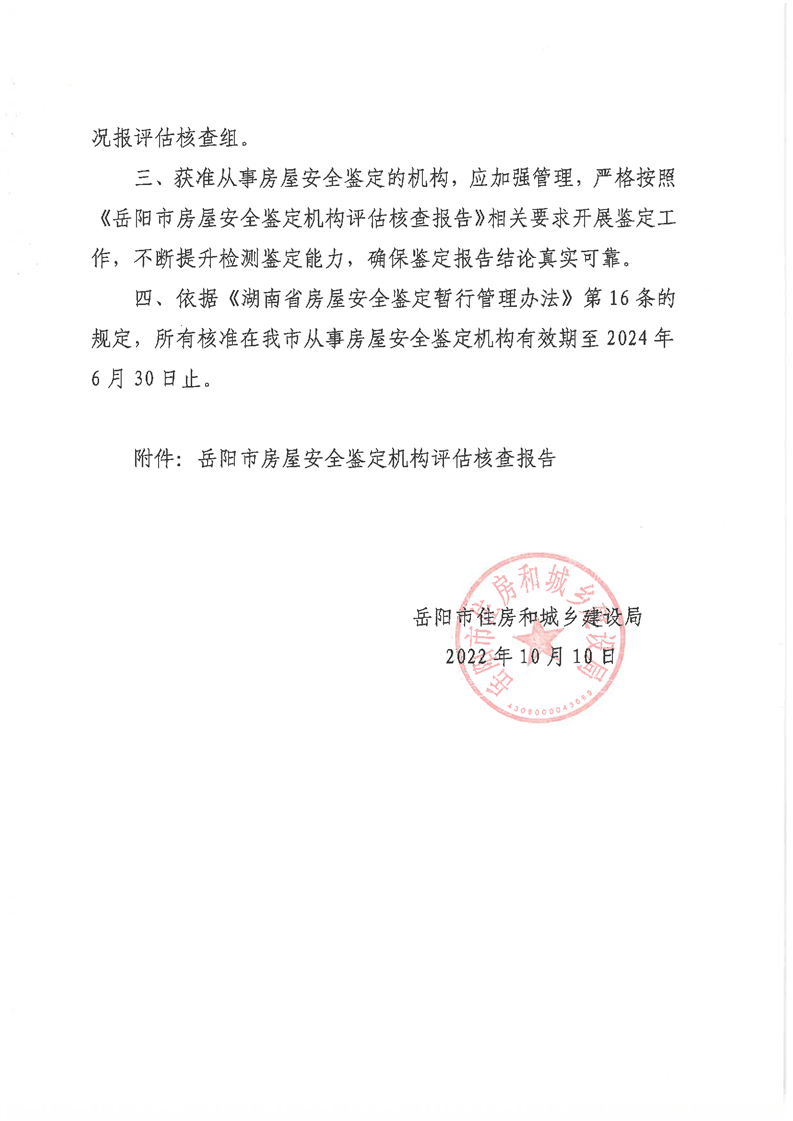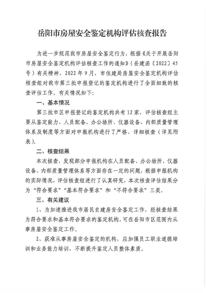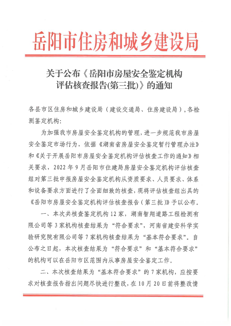 关于公布《岳阳市第三批房屋安全鉴定机构评估核查报告》的通知