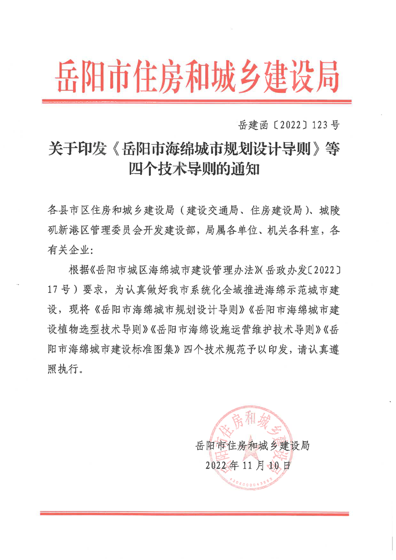 关于印发《岳阳市海绵城市规划设计导则》等四个技术导则的通知