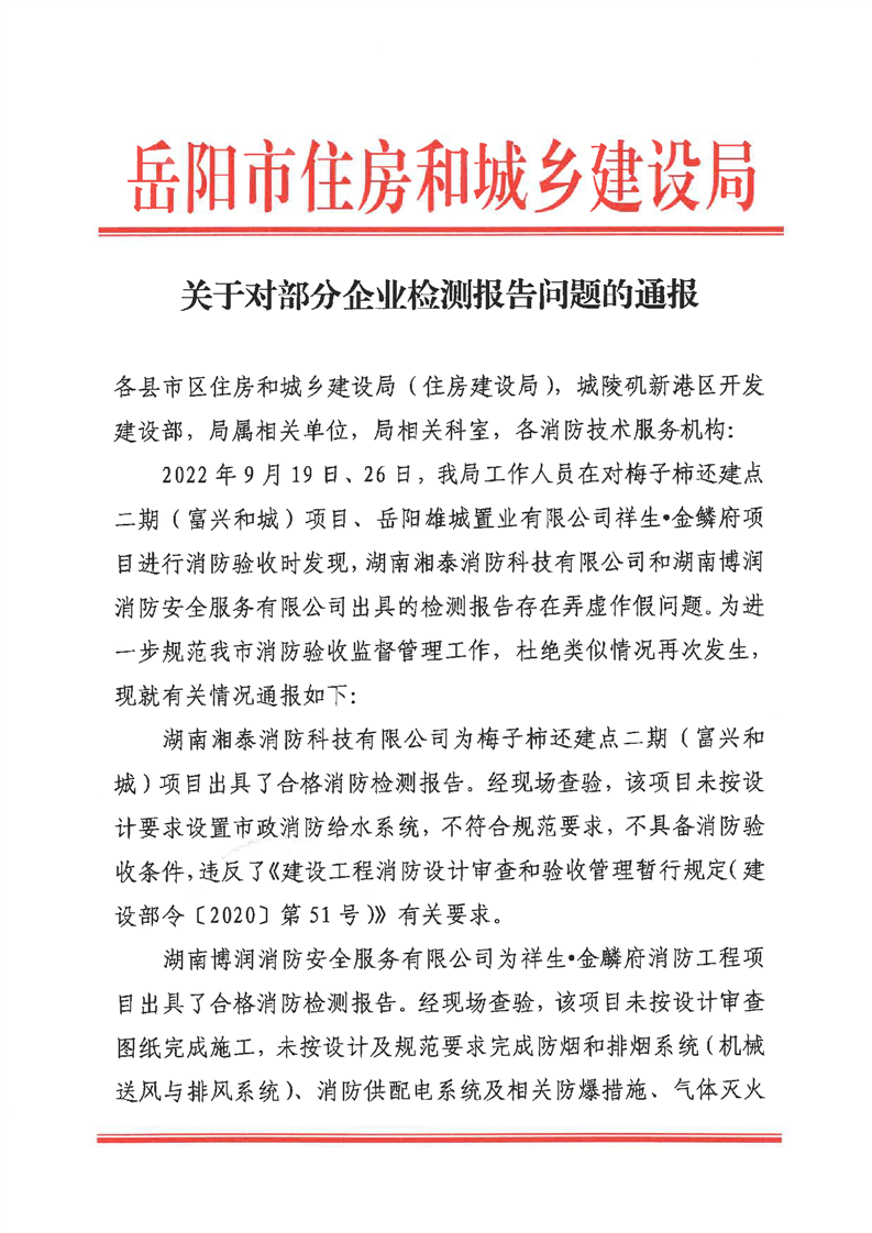 关于对部分企业检测报告问题的通报