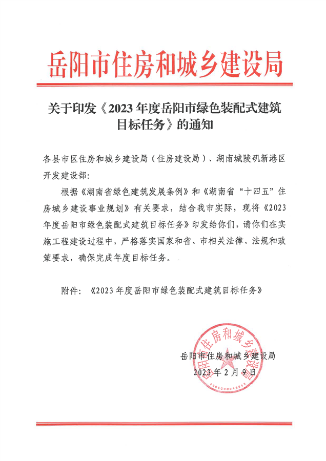 关于印发《2023年度岳阳市绿色装配式建筑目标任务》的通知