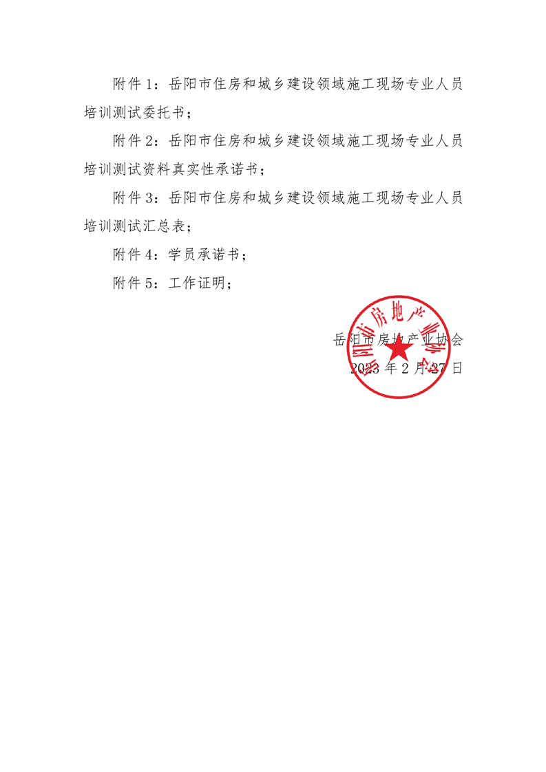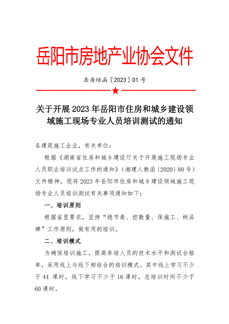 关于开展2023年岳阳市住房城乡建设领域施工现场专业人员培训测试的通知(2).pdf