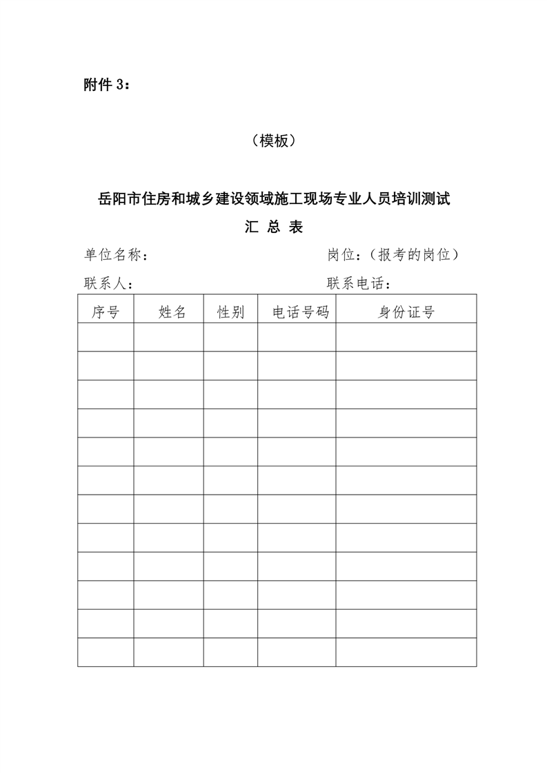 关于开展2023年岳阳市住房和城乡建设领域施工现场专业人员培训测试的通知