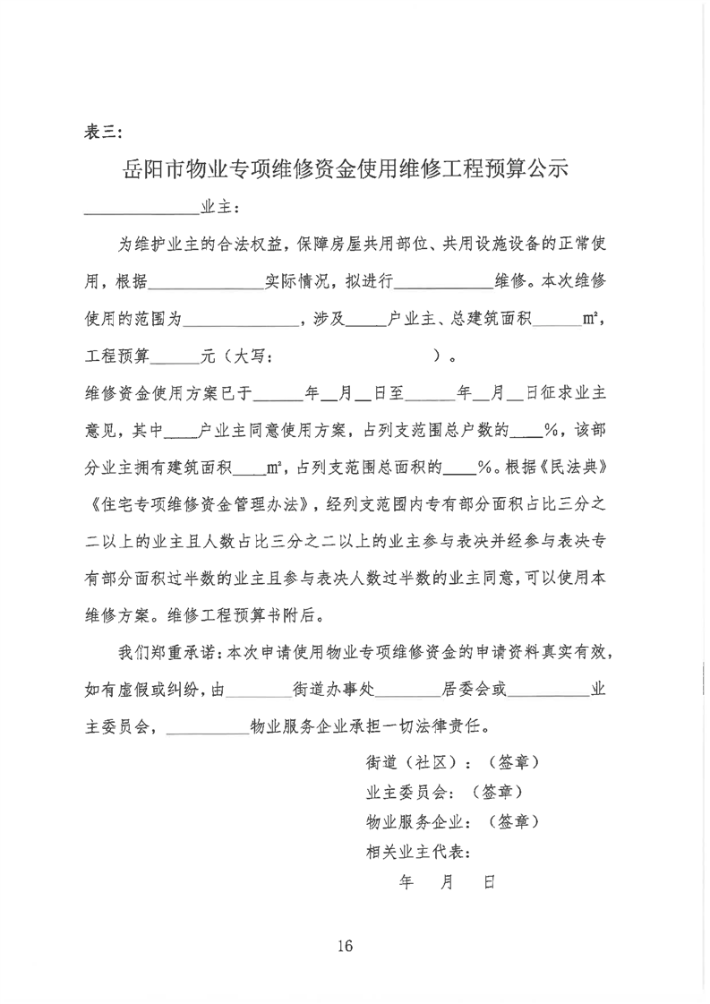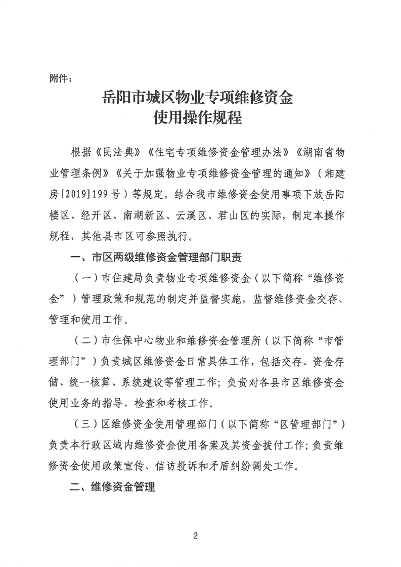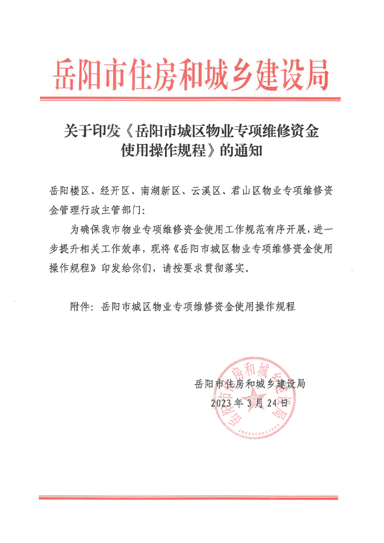 关于印发《岳阳市城区物业专项维修资金使用操作规程》的通知