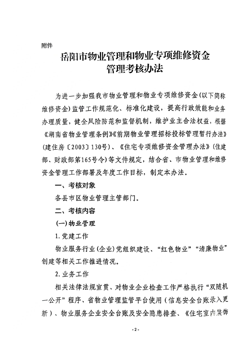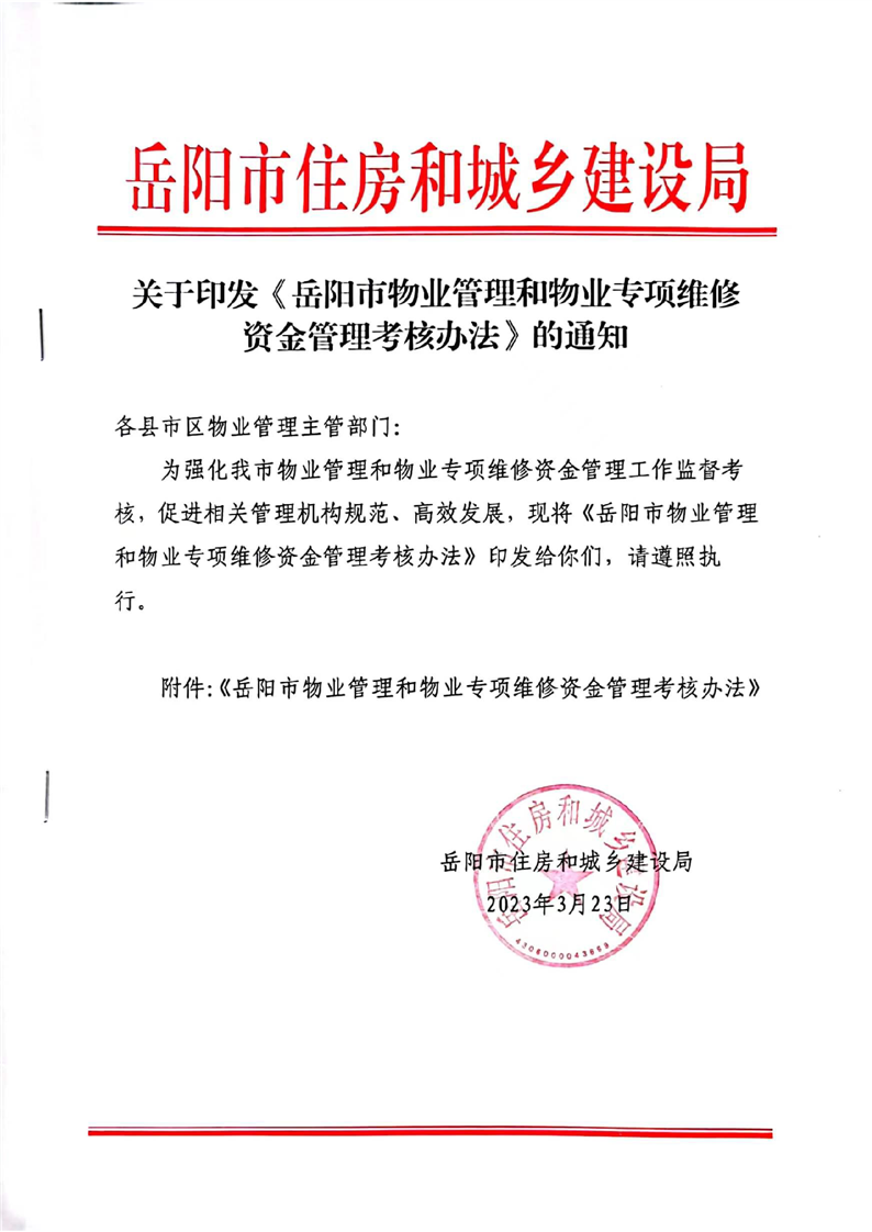 关于印发《岳阳市物业管理和物业专项维修资金管理考核办法》的通知