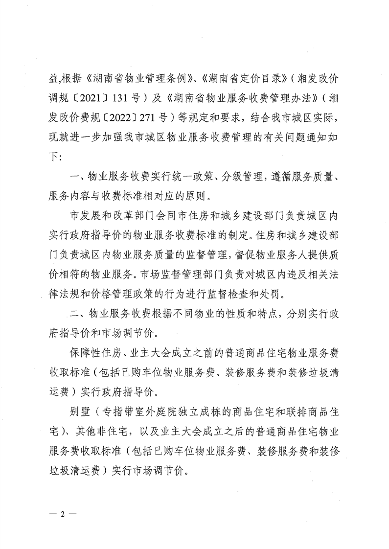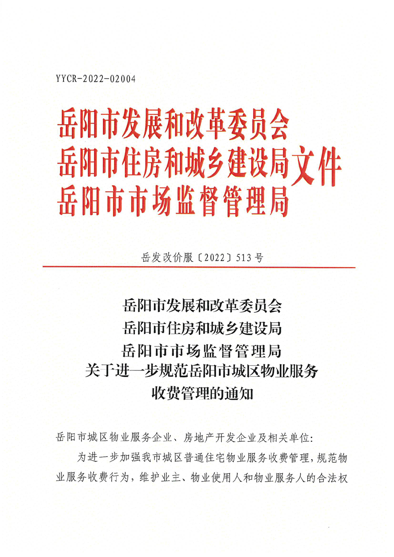 关于进一步规范岳阳市城区物业服务收费管理的通知