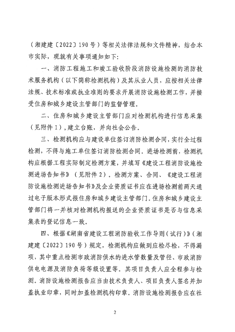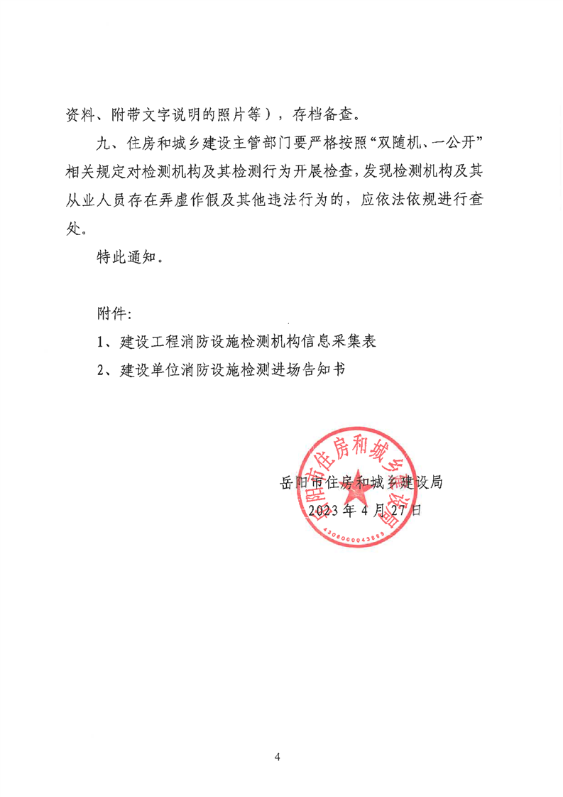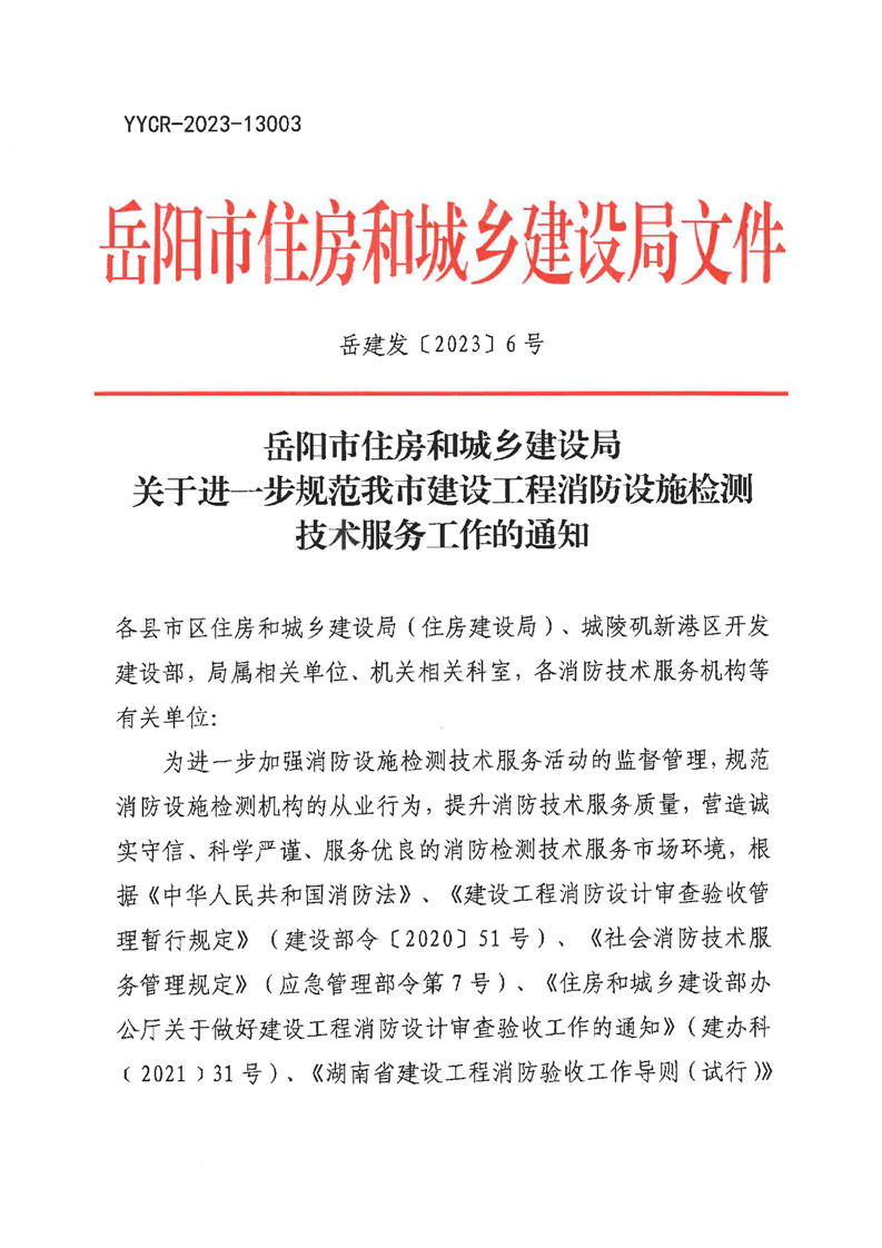 岳阳市住房和城乡建设局关于进一步规范我市建设工程消防设施检测技术服务工作的通知