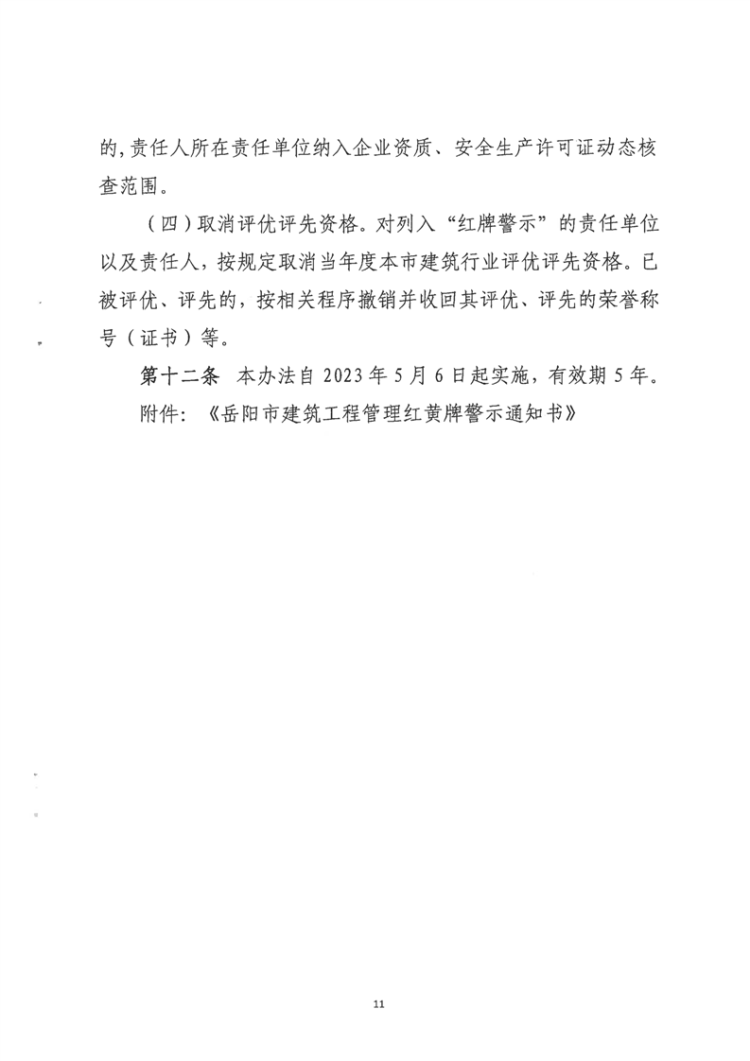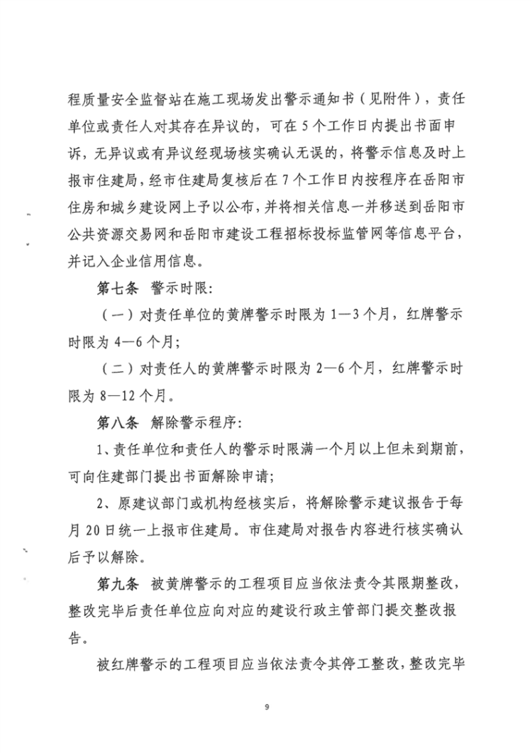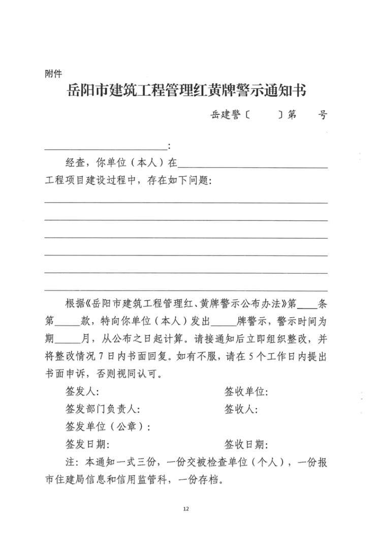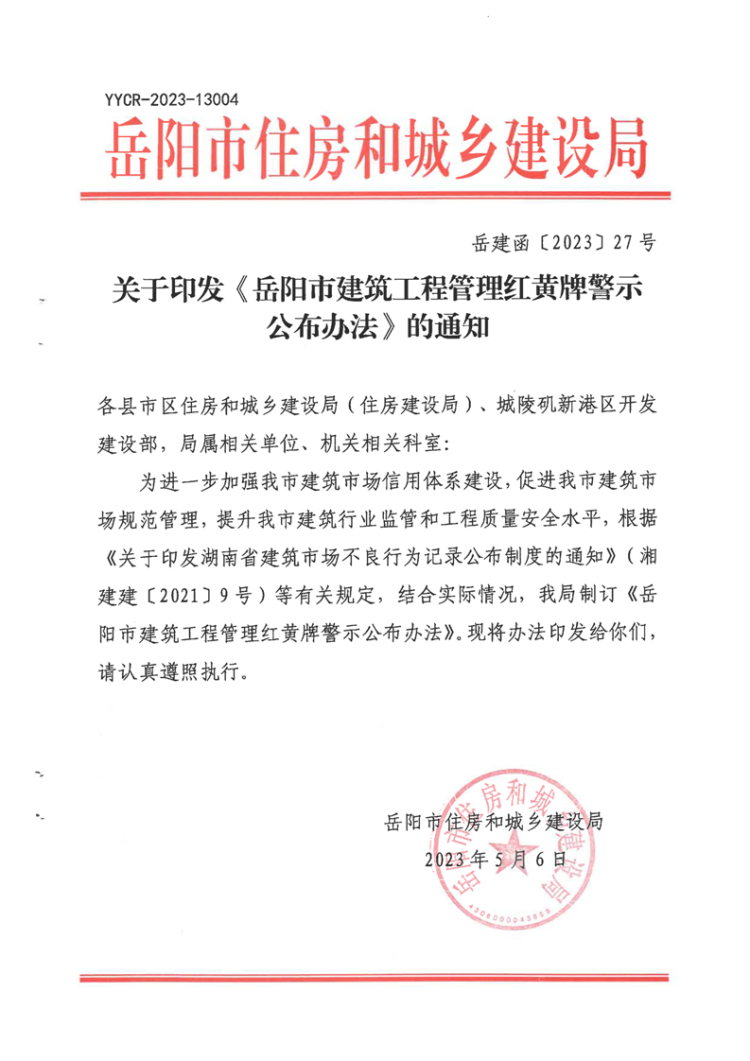 岳阳市住房和城乡建设局关于印发《岳阳市建筑工程管理红黄牌警示公布办法》的通知