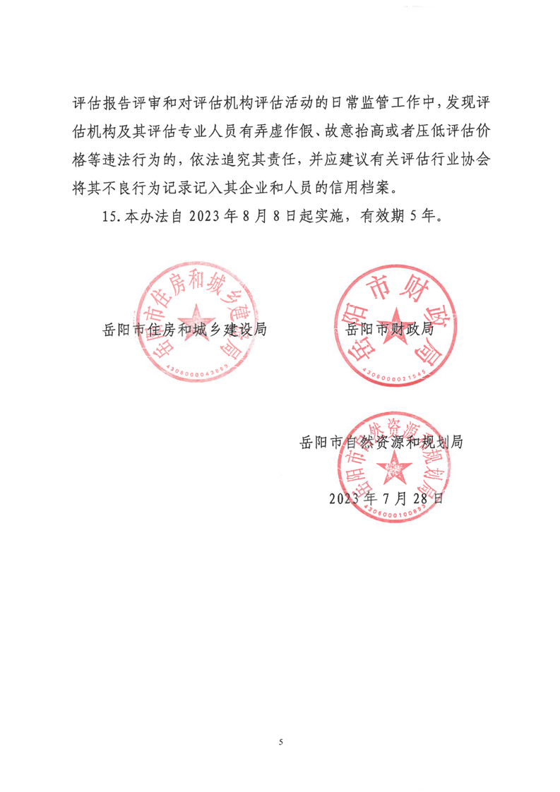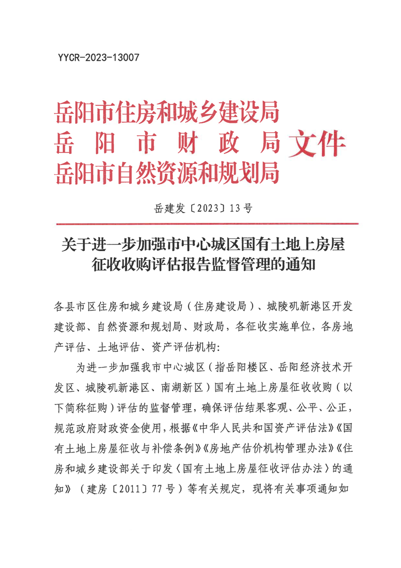 岳阳市住房和城乡建设局关于进一步加强市中心城区国有土地上房屋征收收购评估报告监督管理的通知