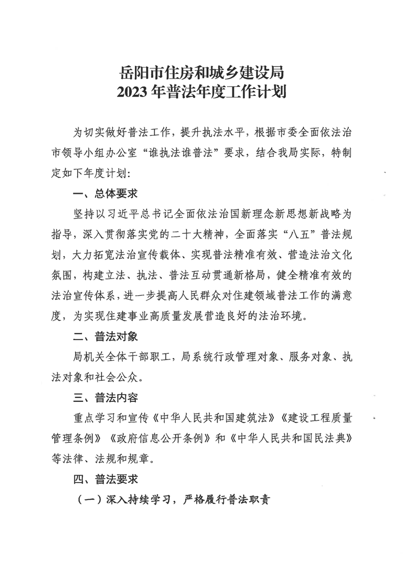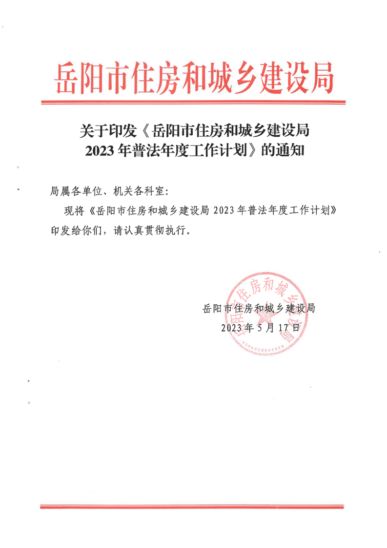 关于印发《岳阳市住房和城乡建设局2023年普法年度工作计划》的通知