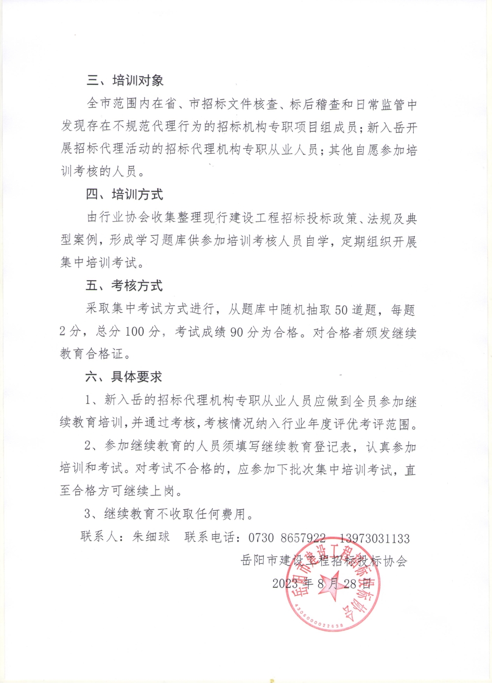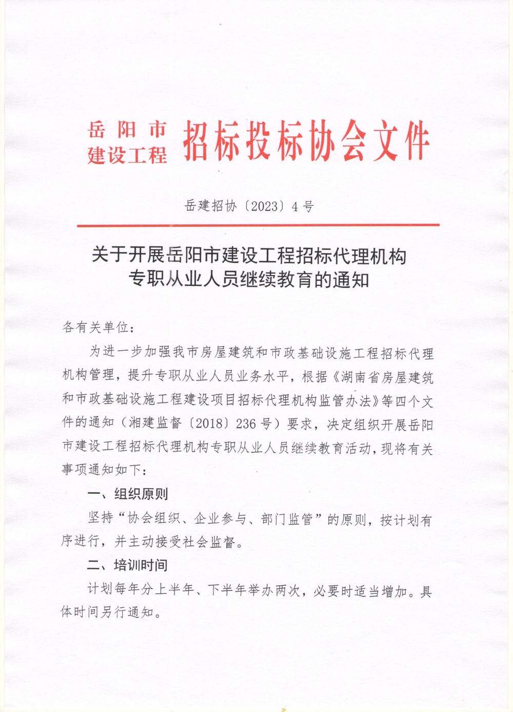 关于开展岳阳市建设工程招标代理机构专职从业人员继续教育的通知