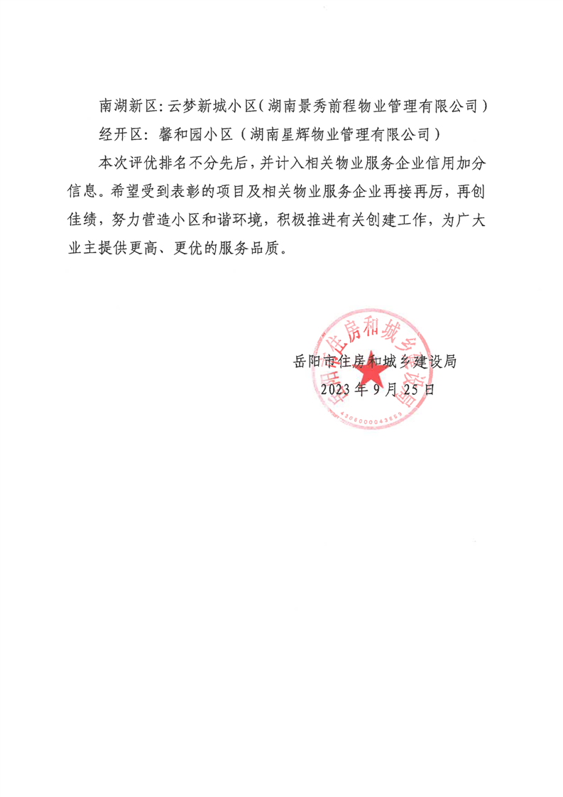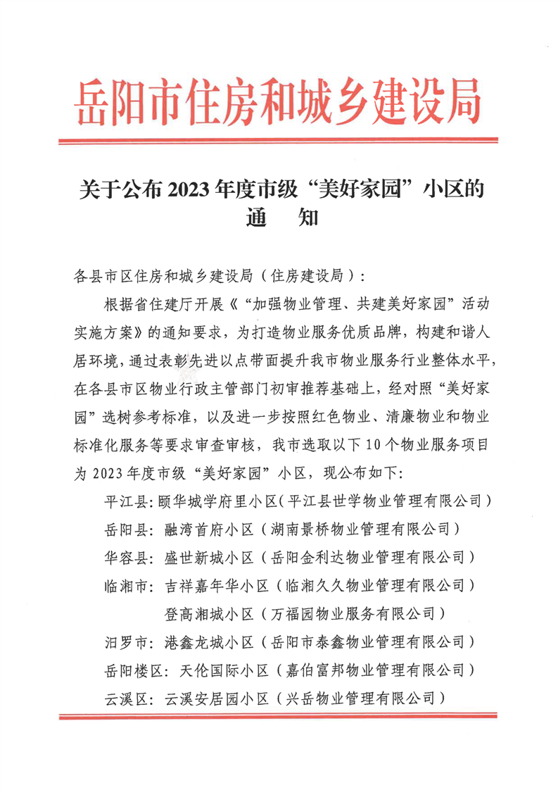 关于公布2023年度市级“美好家园”小区的通知